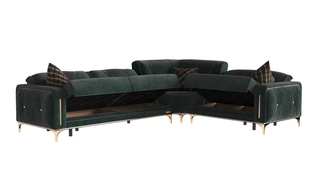 - Mid Century Modern Microfiber and Gold Convertible Sleeper Sectional Sofa Storage.