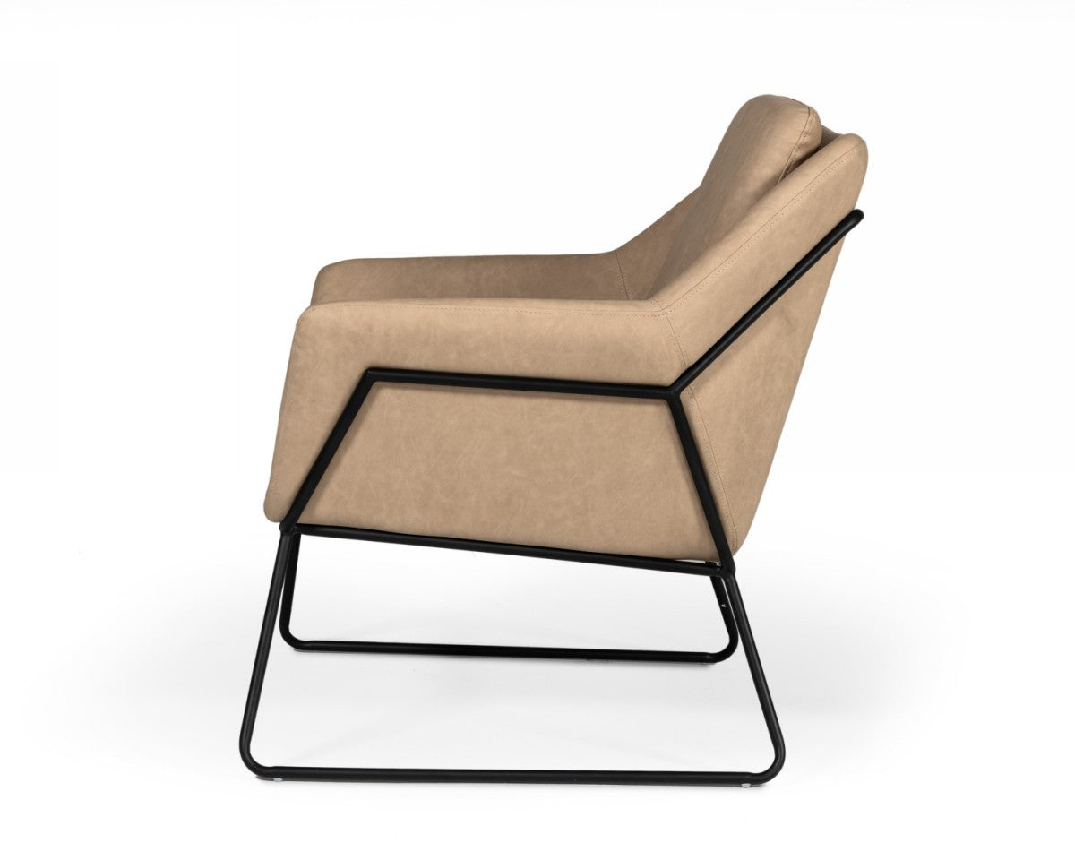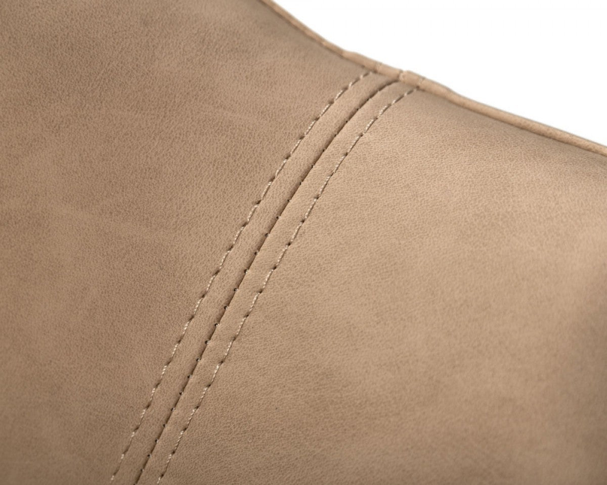 - Solid color taupe upholstery adds a touch of elegance to any room.