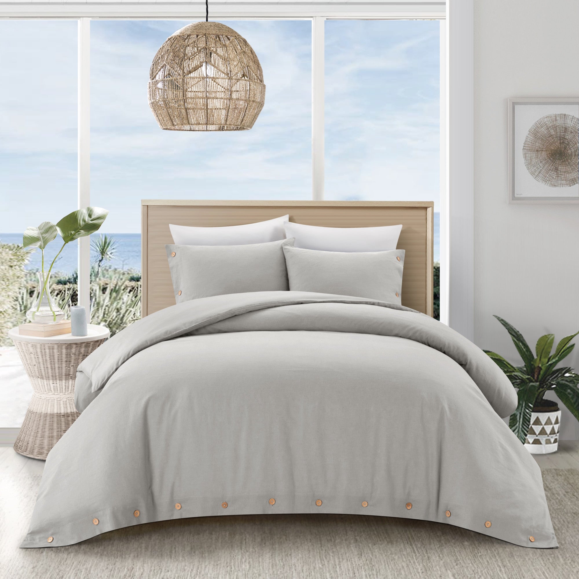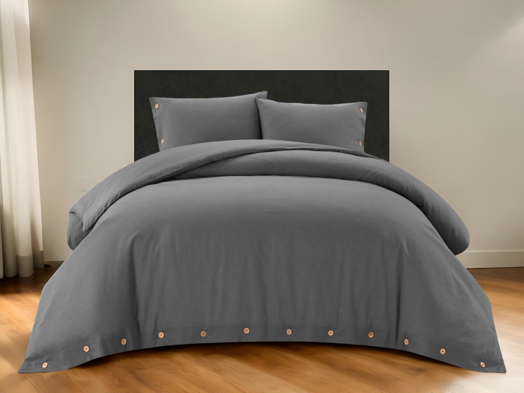 - Modern style beige duvet cover set for queen size beds, made with 100% cotton cover material for comfort and durability. Includes a duvet cover, and two matching pillow shams.