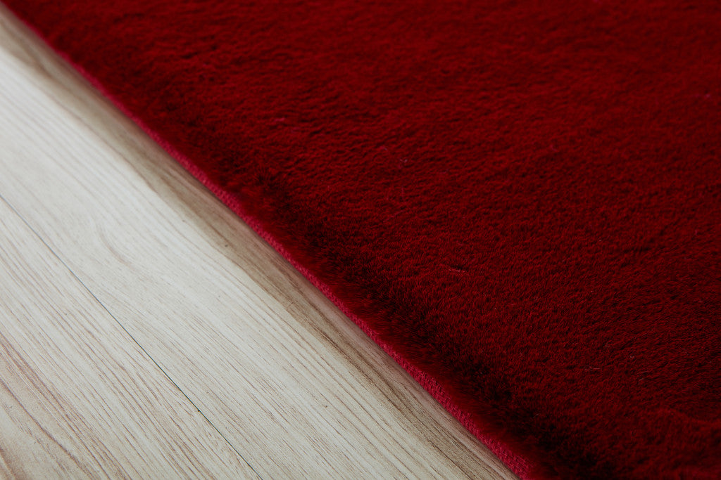 - Luxurious faux fur area rug in a vibrant red hue, perfect for transitional style interiors.