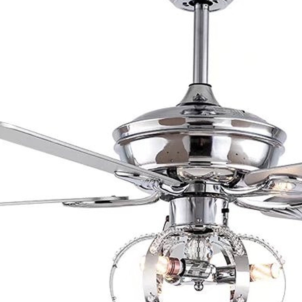 - Features Glamorous Faux Crystal Chandlier Style Lighting combined with the practicality of a fan.