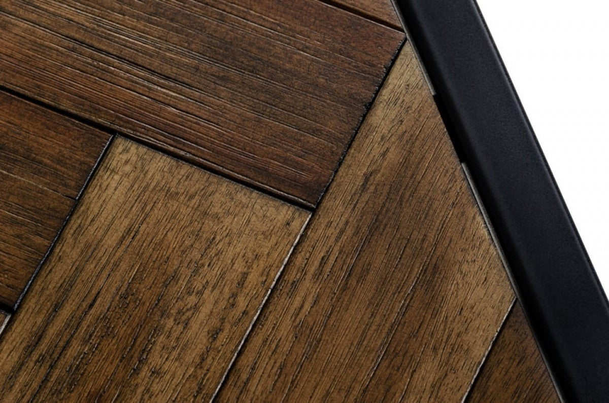 - Beautiful Acacia Veneer is used on the table surface to form a chevron paneled design.