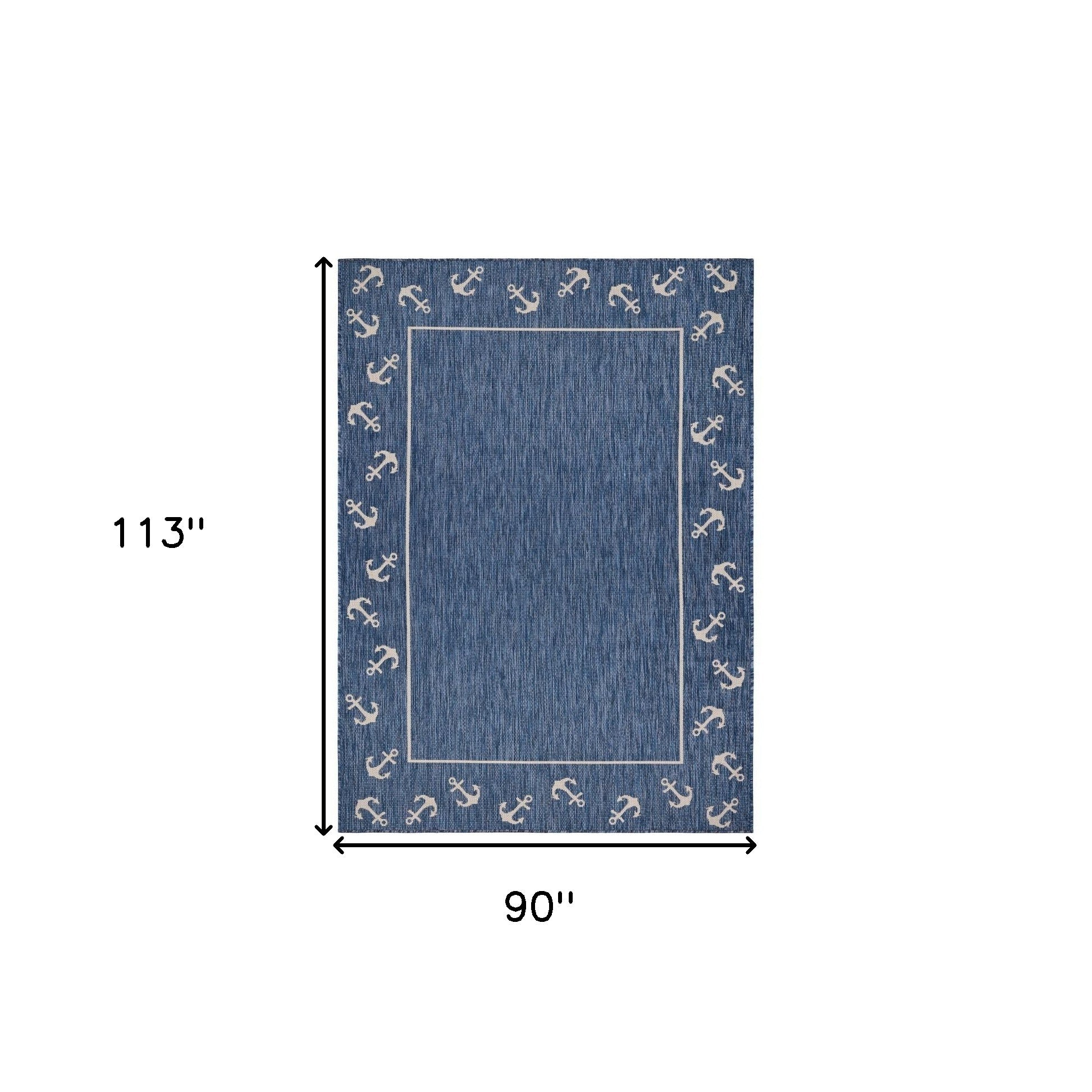 - Navy Blue and Natural Indoor Outdoor Area Rug. Features anchors around the border for a nautical look.