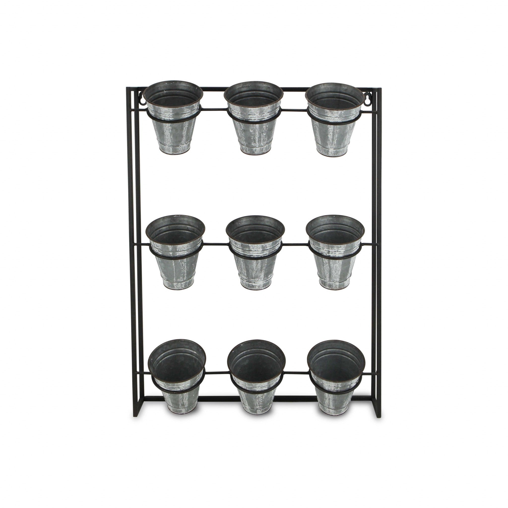 - includes 9 same-size galvanized pots