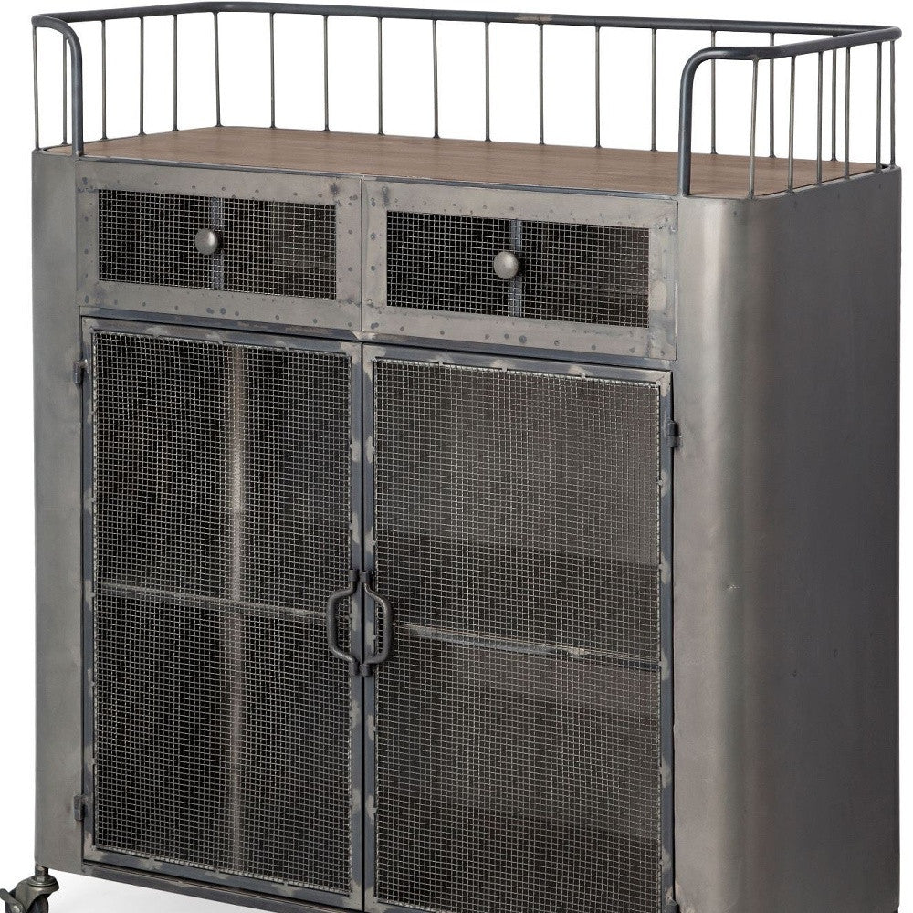- crafted from metal finished in a rustic silver tone with features such as meshed doors, a rugged, on-trend industrial vibe to it.
