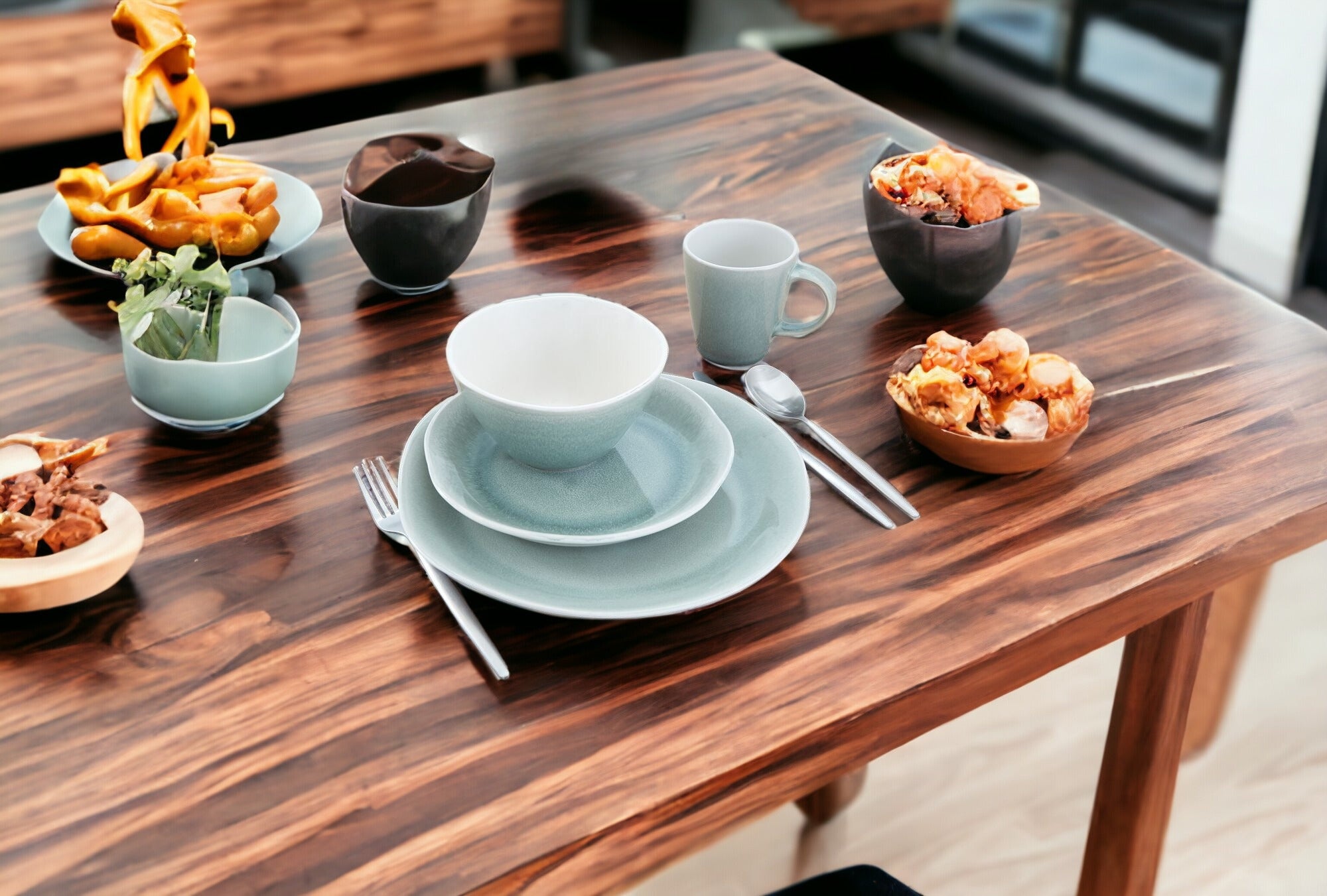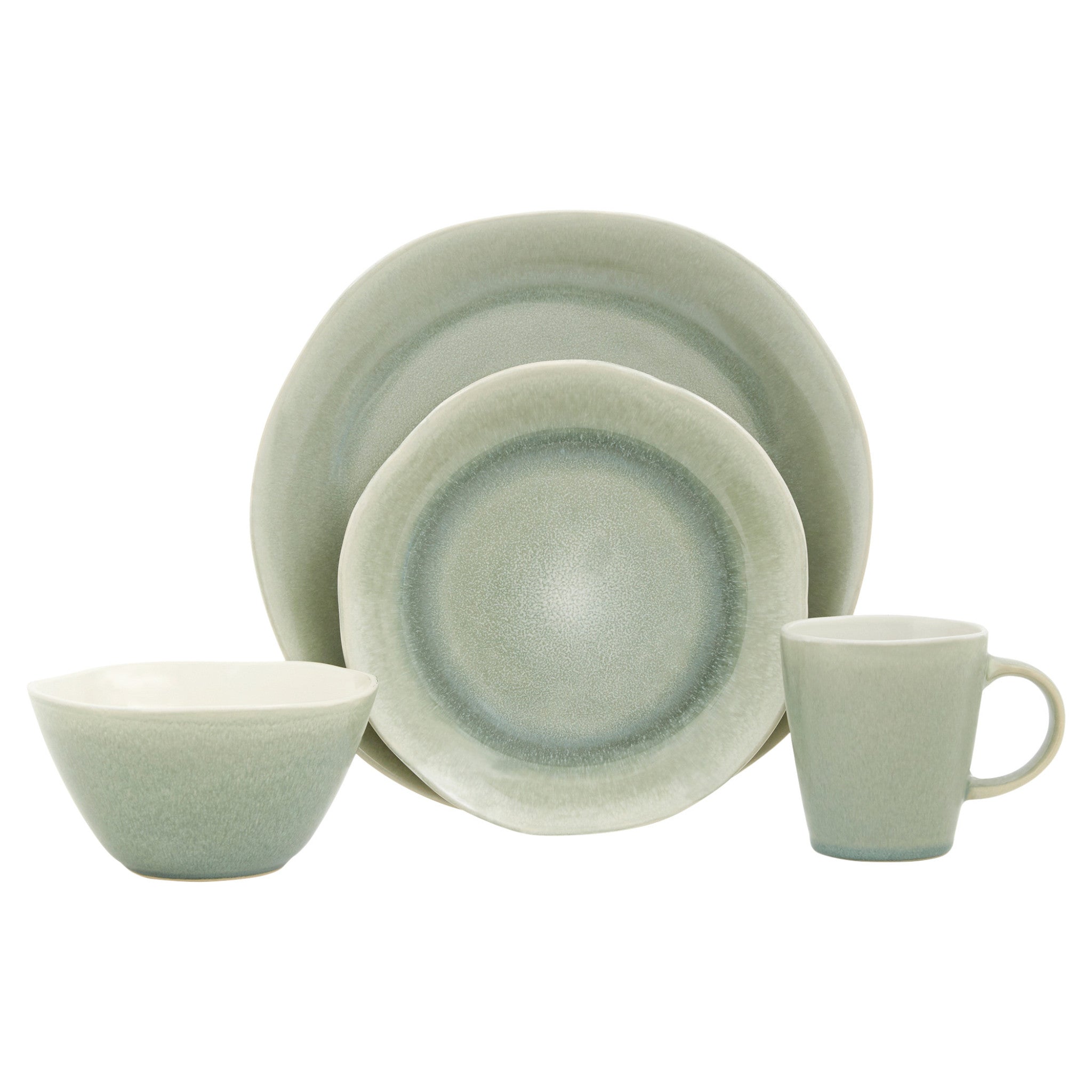 - Modern and fresh Sage Green reactive glaze dinnerware set.