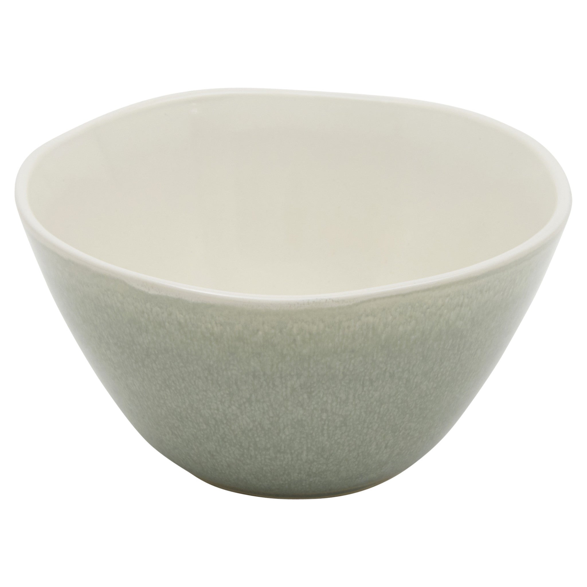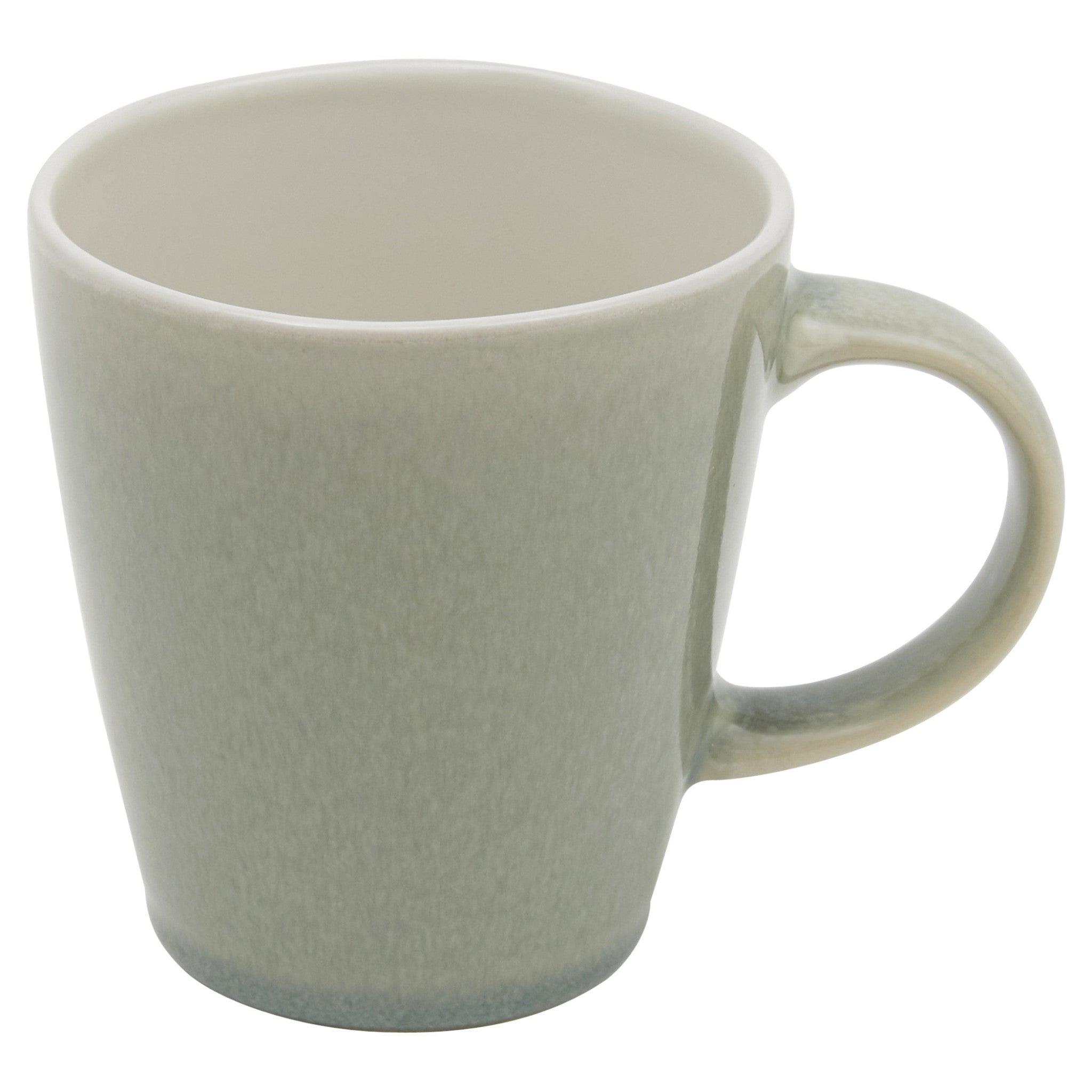 - The insides of the cereal bowl and mug are a creamy ivory that marries beautifully with the reactive green glaze.