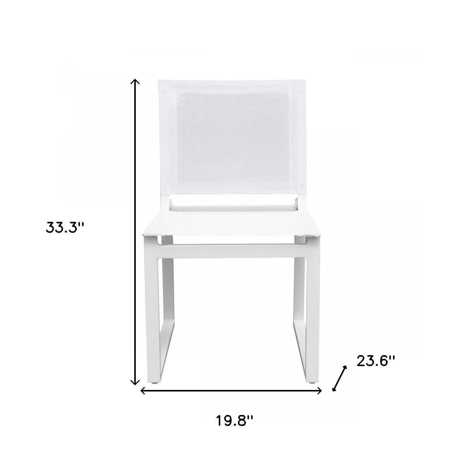 - Modern, stylish and sturdy white on white metal and sling armless multi-purpose, dining or side chairs.
