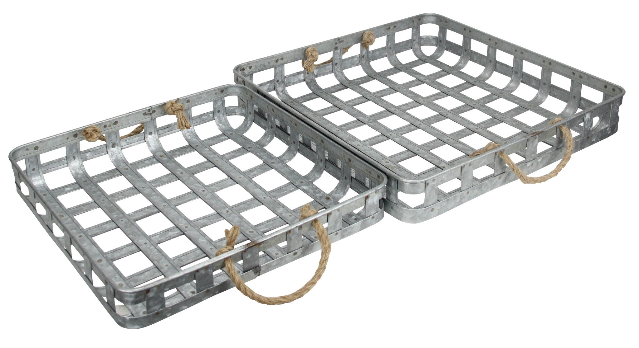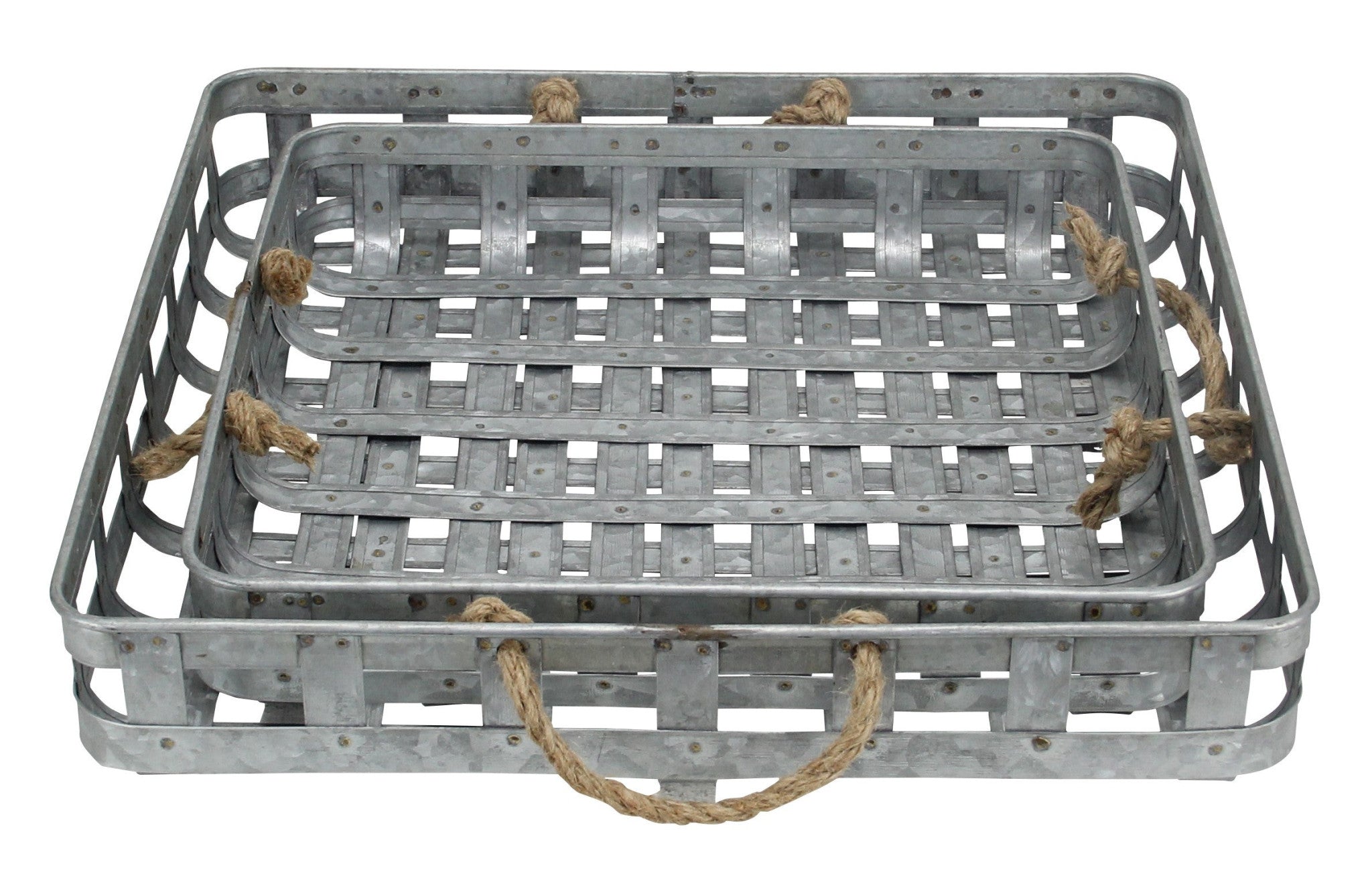 - Inspired by traditional tobacco baskets, these trays feature galvanized metal as a unique update.