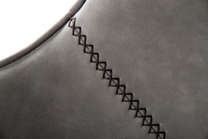 - Upholstered in soft and durable faux leather in a slightly rustic and distressed washed gray color.