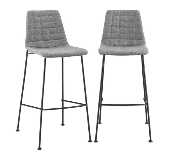 - Set of 2 stylish bar chairs with a low back design and a heathered woven look fabric.