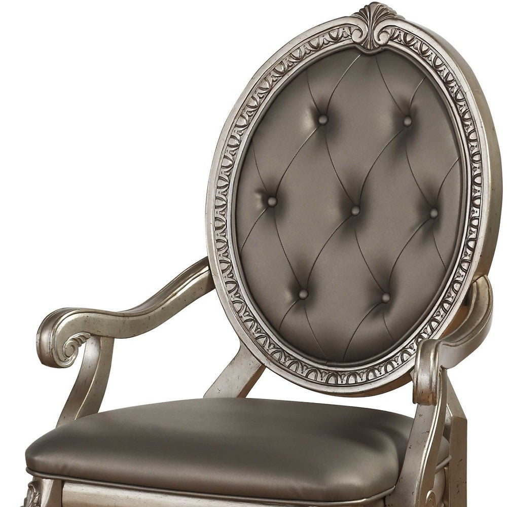 - Upholstered armchair with tufted champagne upholstery for an elegant and traditional look.
