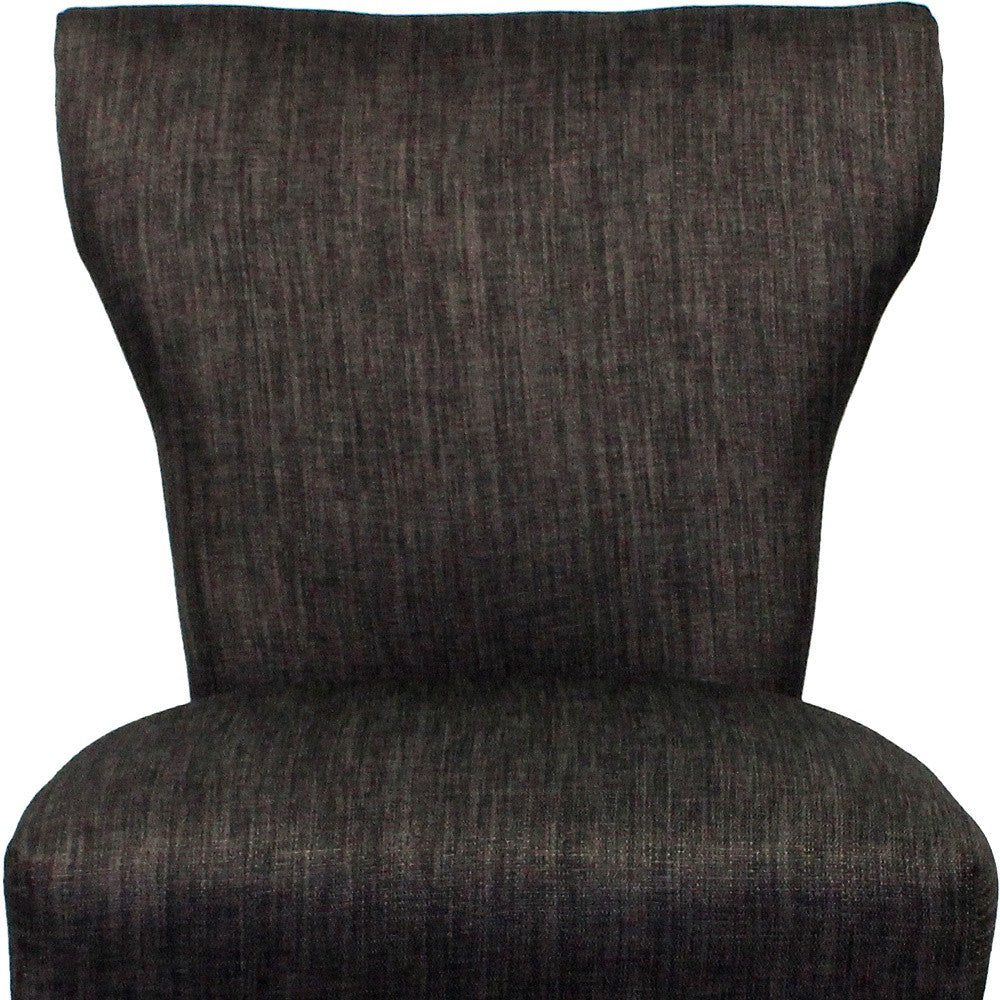 - Stylish dark gray fabric upholstery with nailhead trim.