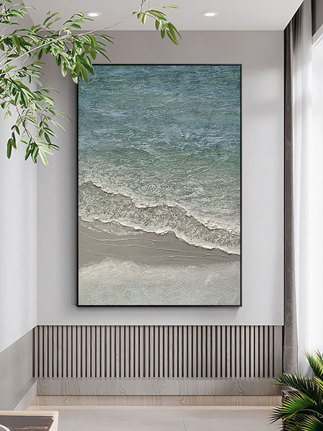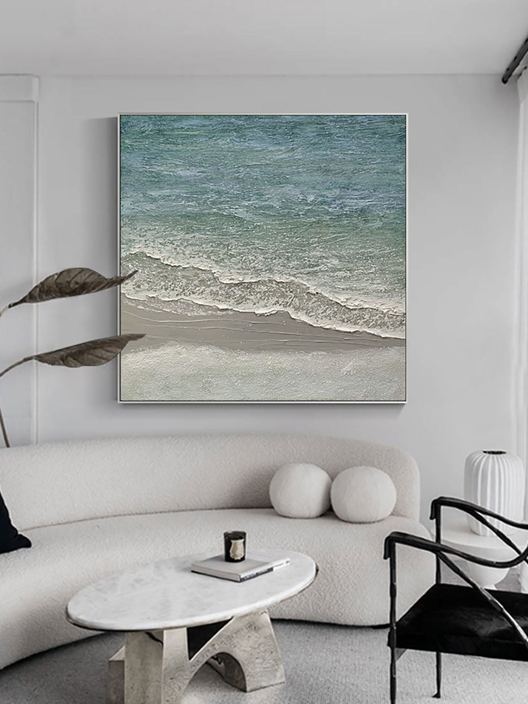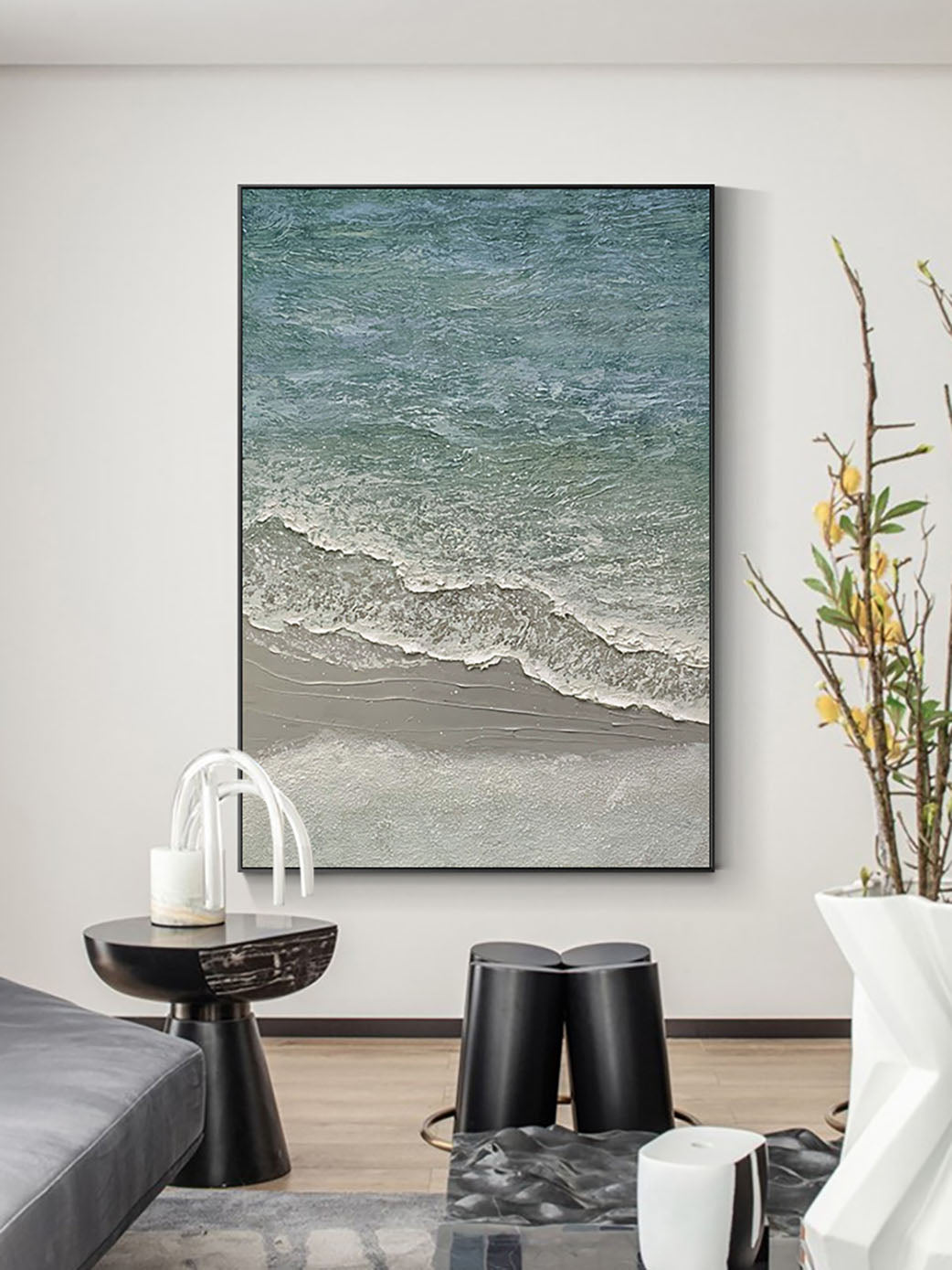 - Modern black and white nature-themed wall decor.