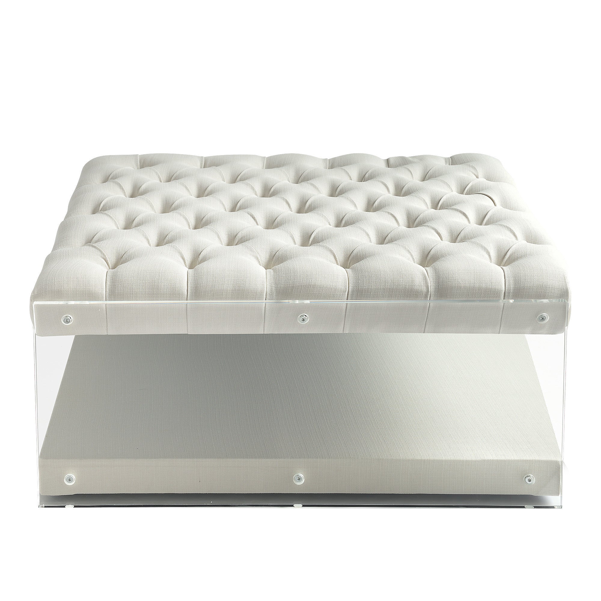 - Unique tufted linen ottoman with clear acrylic sides will be a great accent to your living room, bedroom, or office.