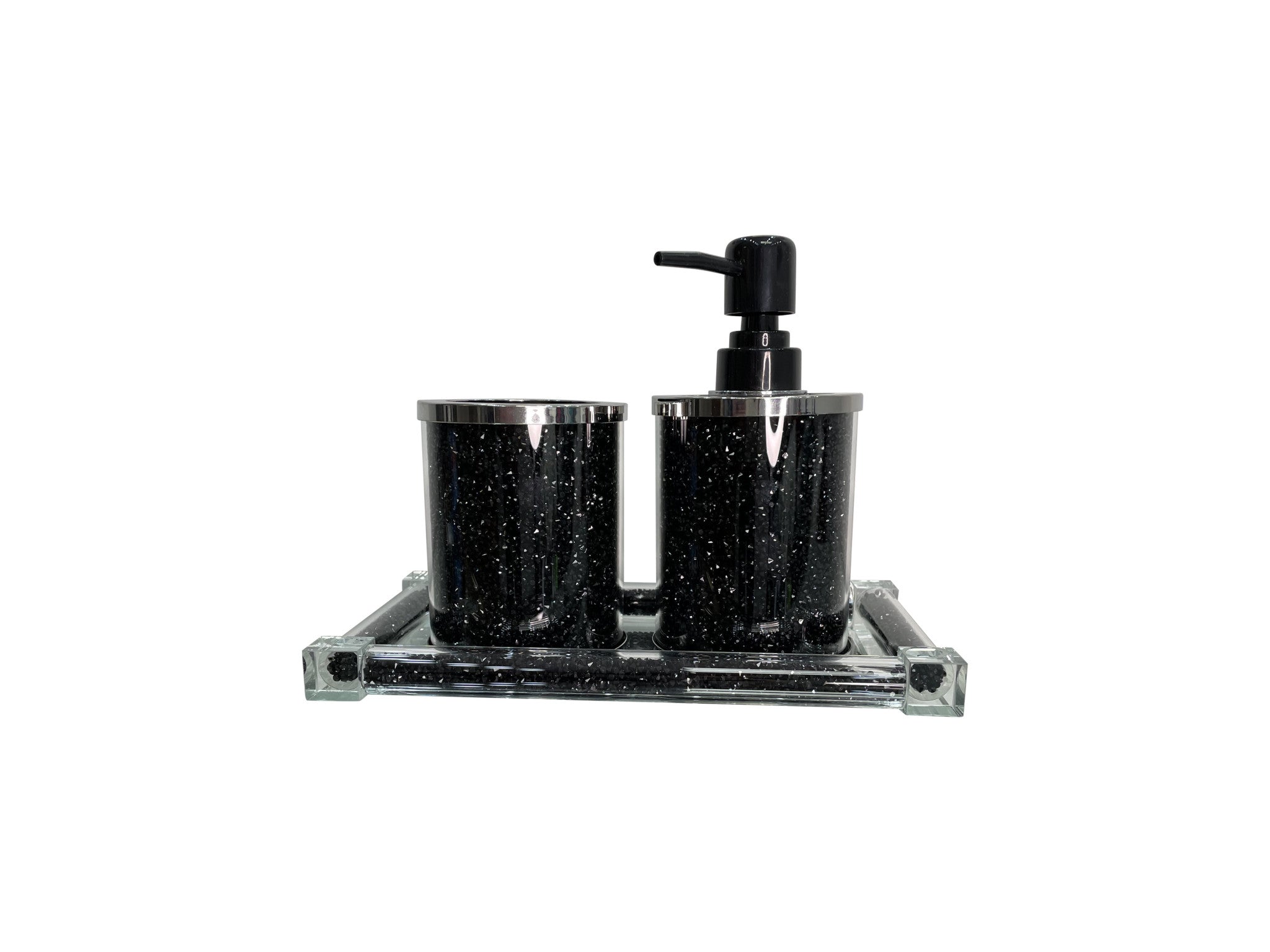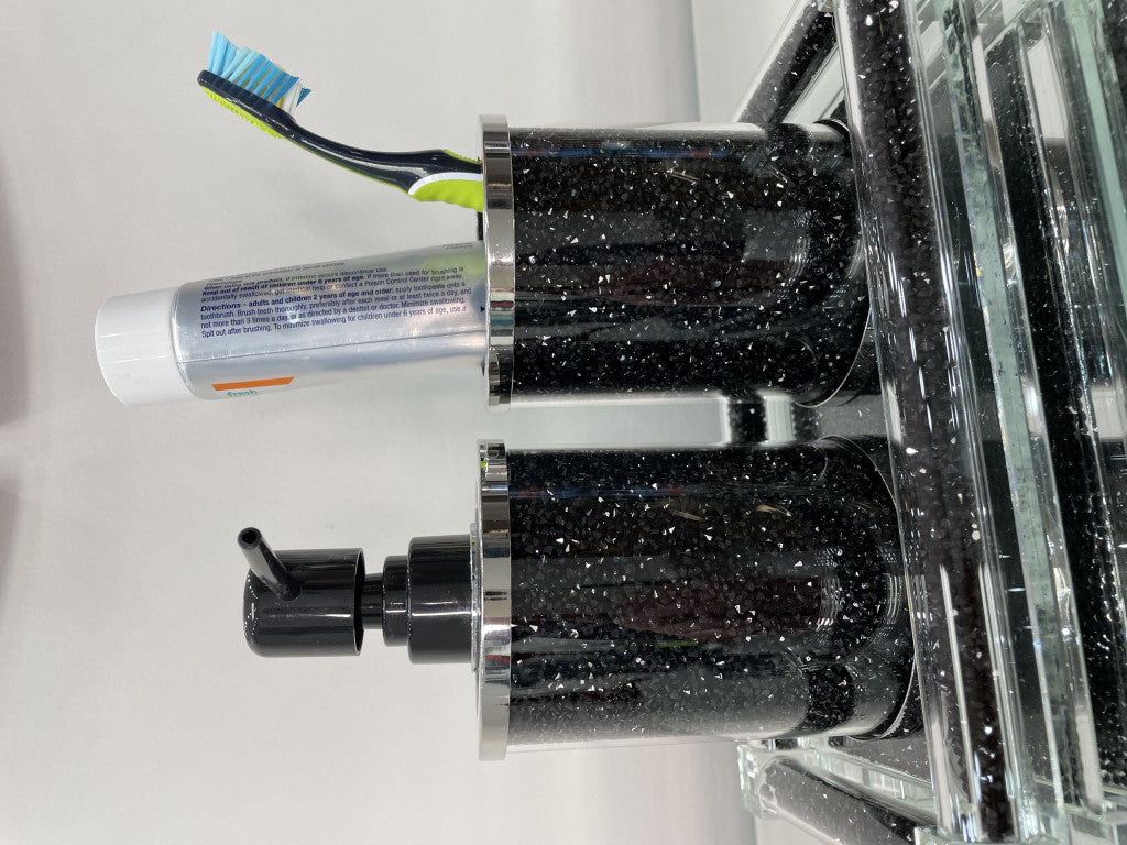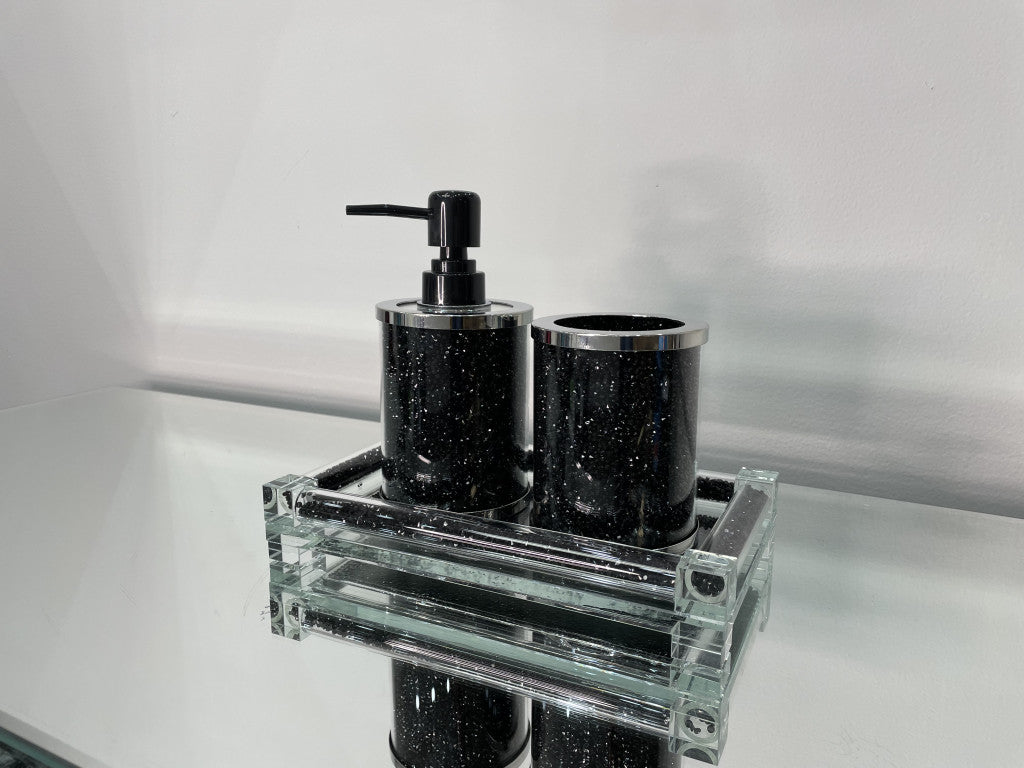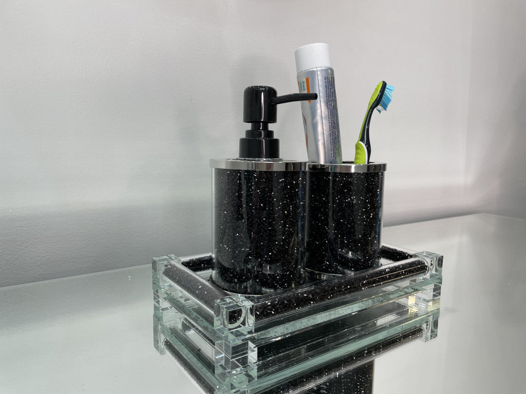 - Set of 3. This is a three-piece accessory set that includes toothbrush holder, soap dispenser and accessory tray.