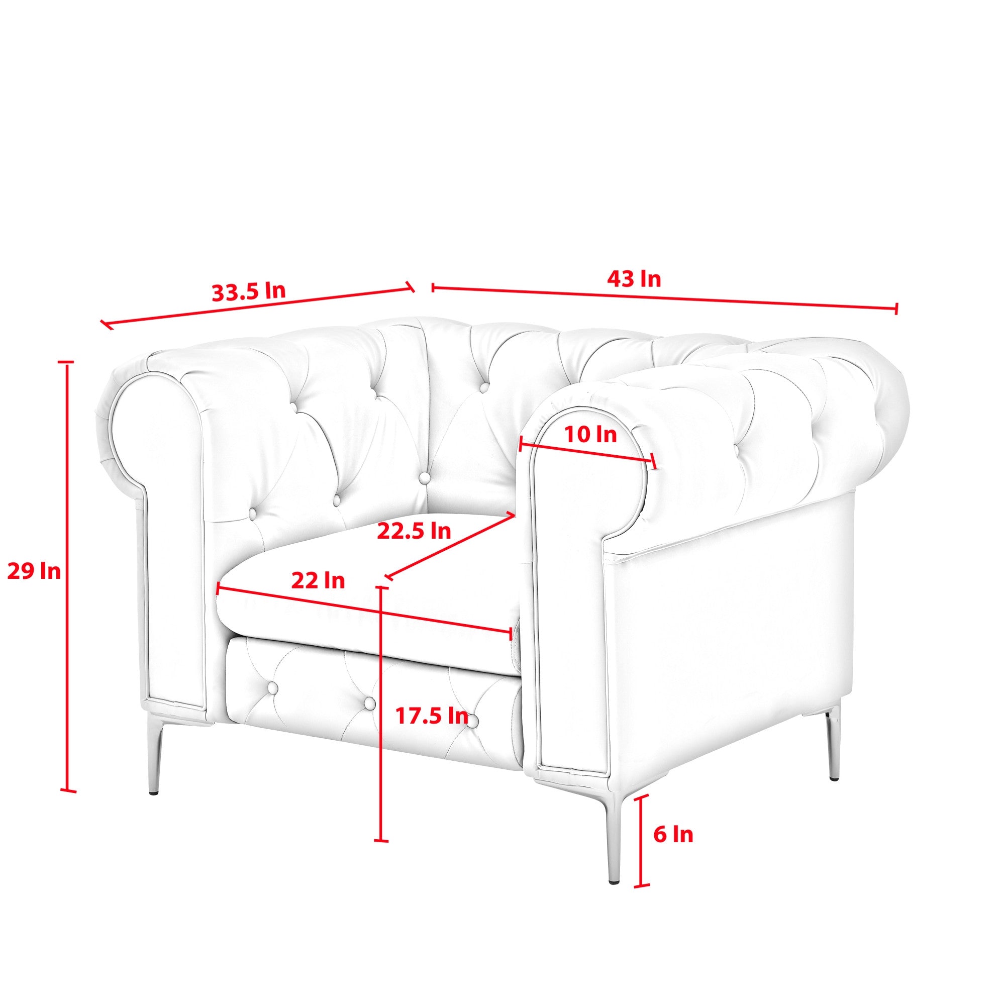 - Tufted back design and flared arms for a touch of elegance and comfort.