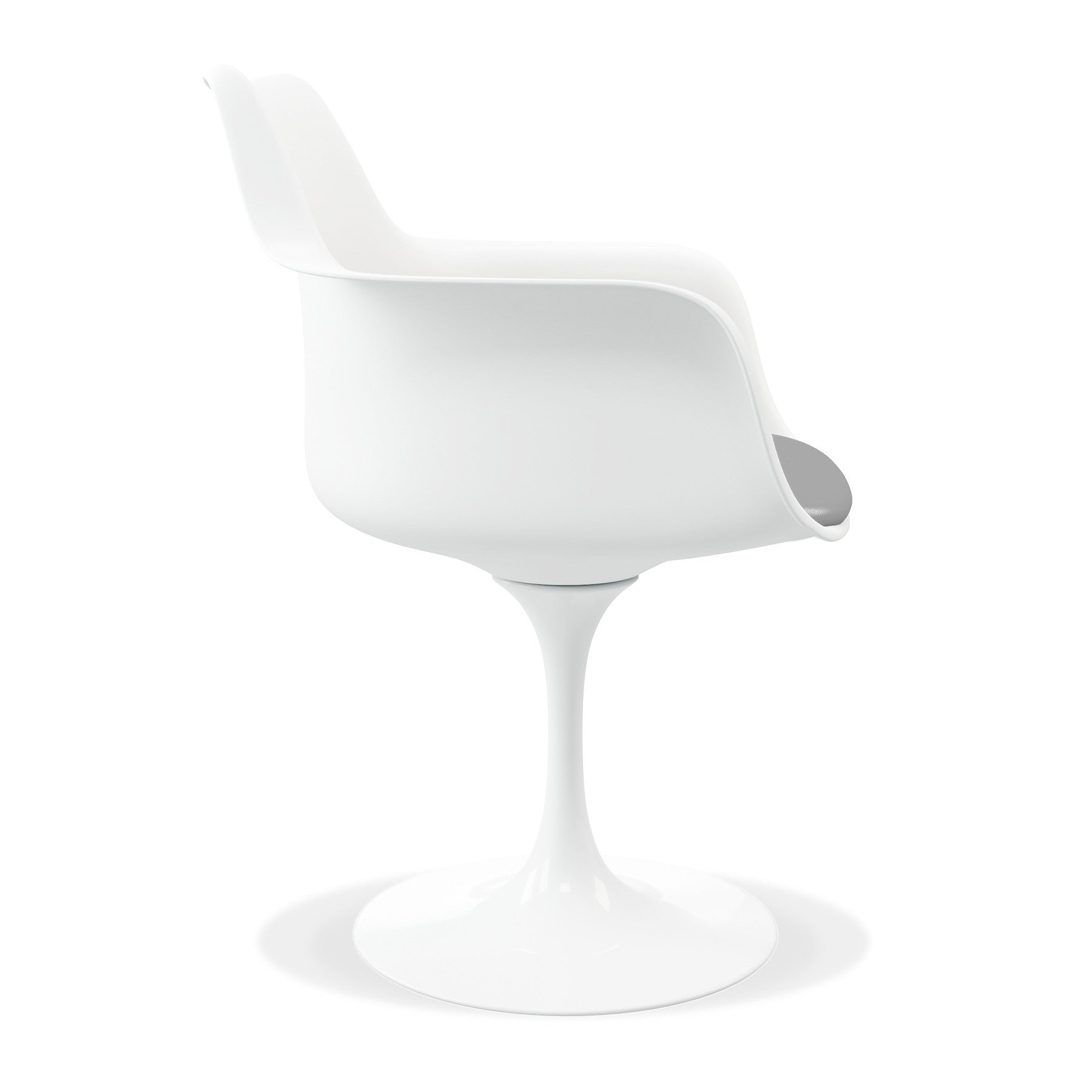 - Mid-century inspired, shiny lacquer finish, pedestal style dining armchair with seat cushion.