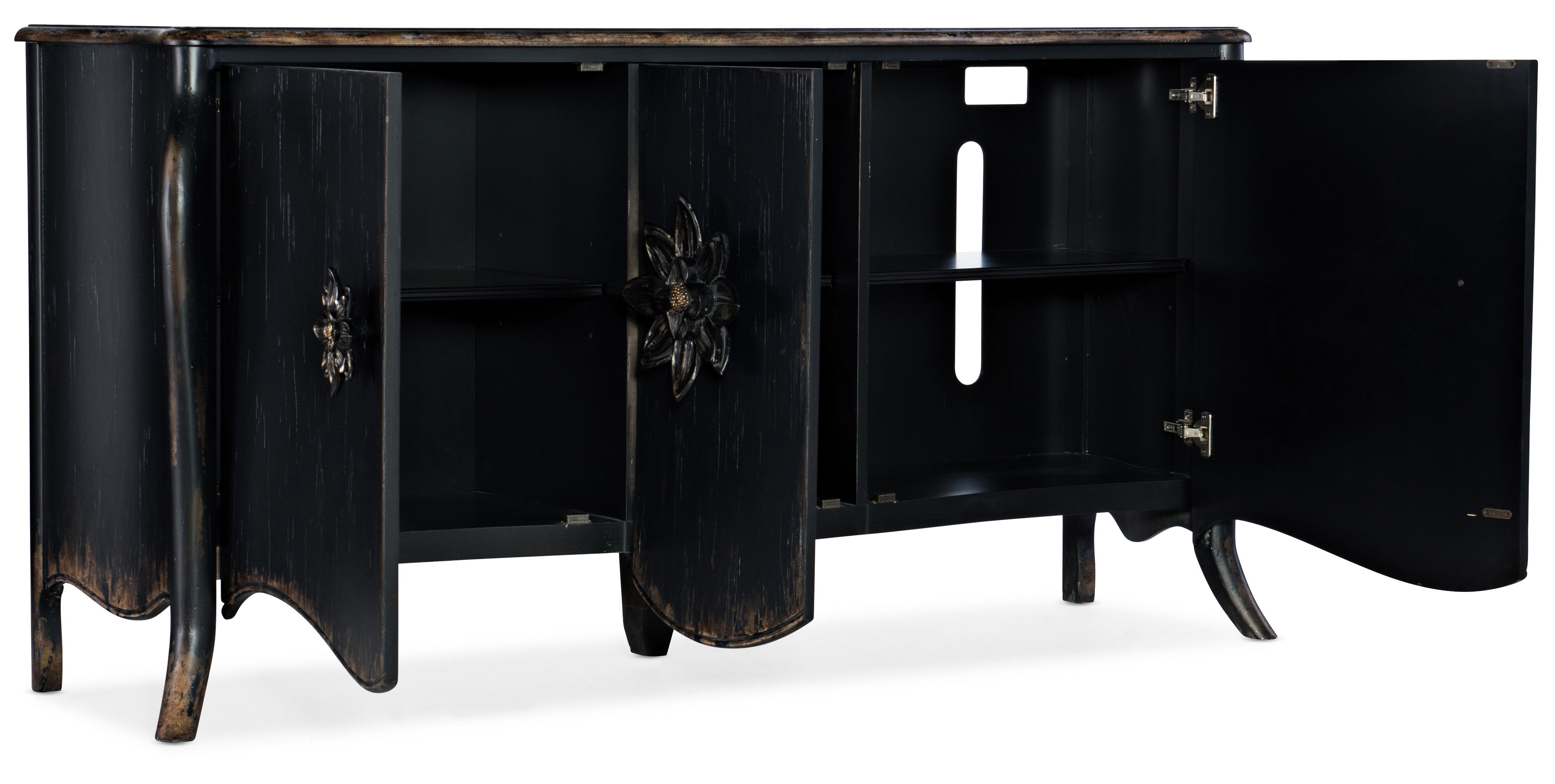 Channeling jet setting socialites from the golden age of Hollywood as its muse, Hooker Furniture is set to launches a major expansion to its popular Sanctuary collection. The bedroom, dining room, occasional and home office pieces are grouped into three unique new personas, each of which embody the influences of the iconic starlets whom left impressions of glamour, charm and class on American pop culture. From bold and dramatic to soft and romantic to a statement-making eclectic lifestyle, the three personas – Collette, Anastasie and Diamant – effortlessly bring to life a well-traveled socialite who has curated a collection of home furnishings in her metropolitan home that tell the story of her travels across the globe. Collette, a bold and dramatic look, is characterized by its dark black painted finish which serves as the perfect backdrop for intense pops of champagne, silver and gold, along with eglomise mirror details and dramatic floral carvings.