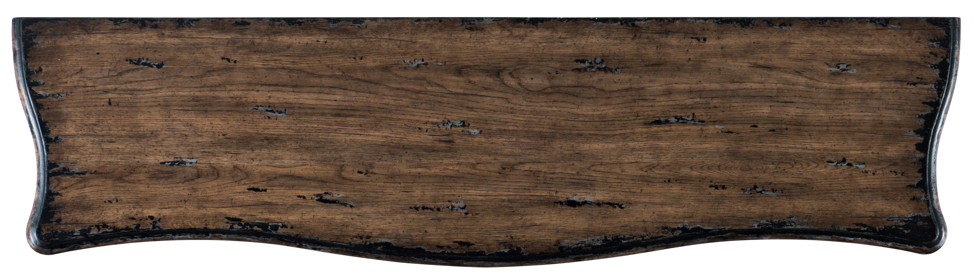 - Finish Description: Porte Noir: a dark, black painted finish rich brown undertones, rubbed to a medium sheen, with areas of heavy rub thru and distressing to review a honey tone wood color. Distressing includes rasping, chopping, worm holes and gouging. Decorative flower hardware.