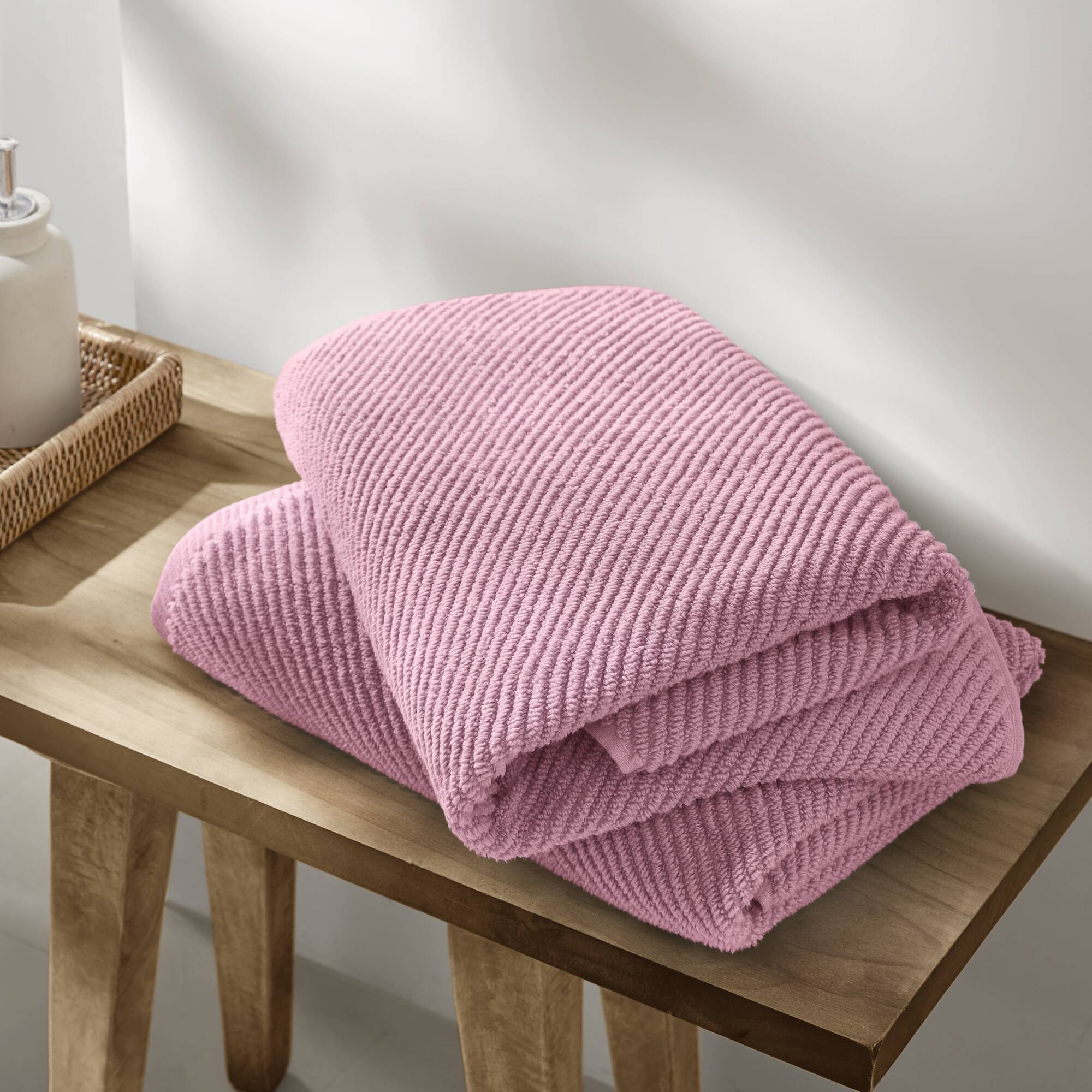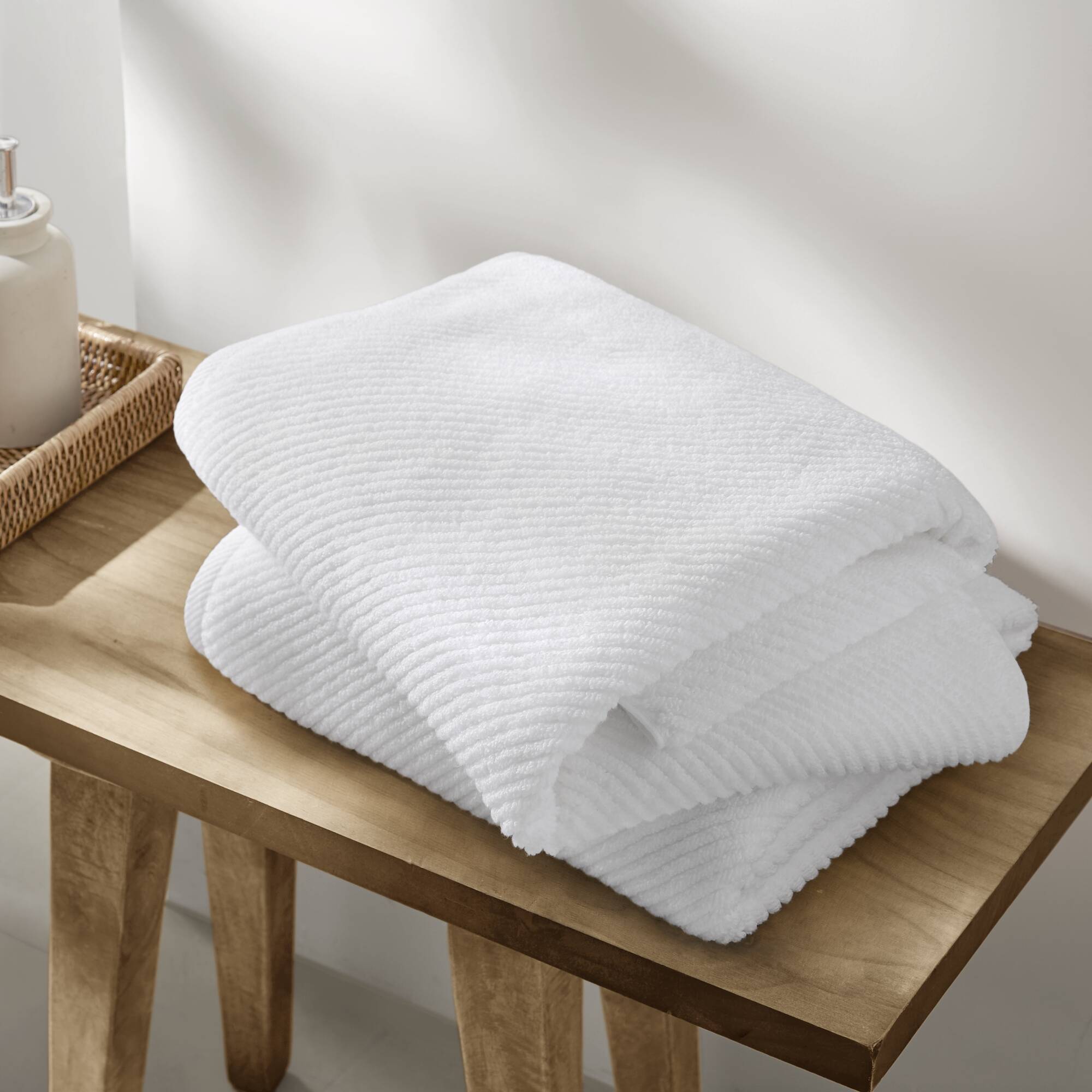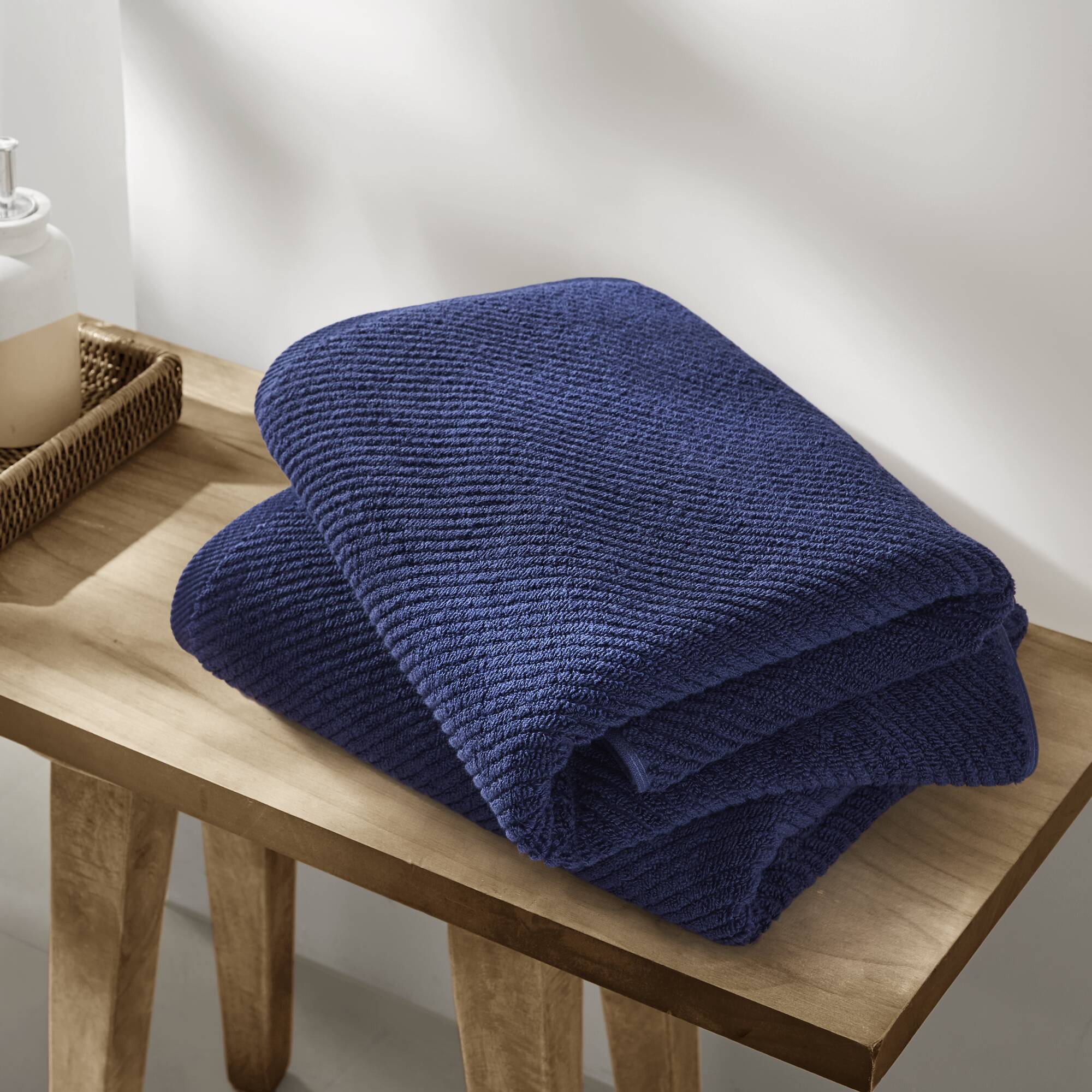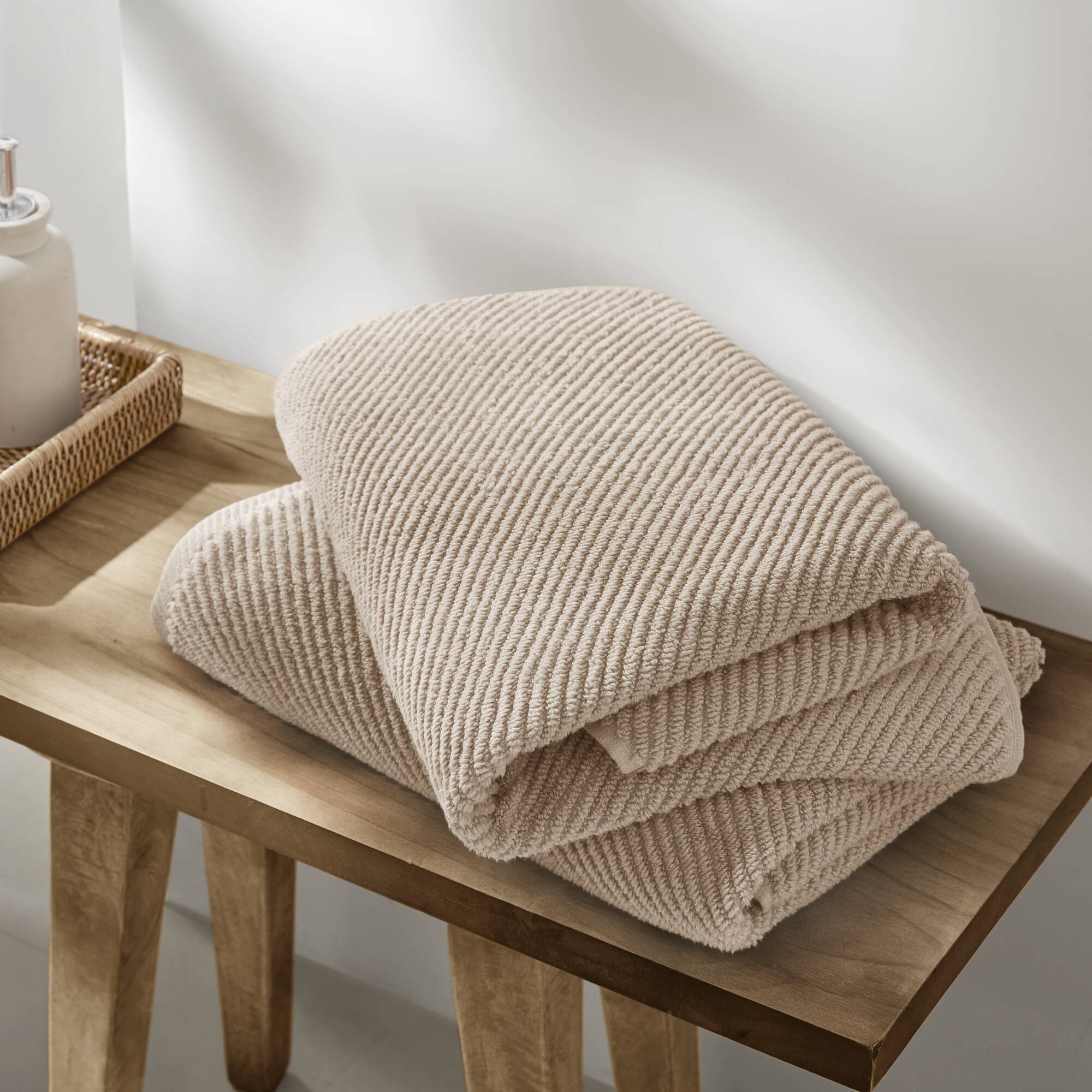 - Texture: Diagonal ribbed weave that enhances airflow for faster drying and adds a contemporary visual detail