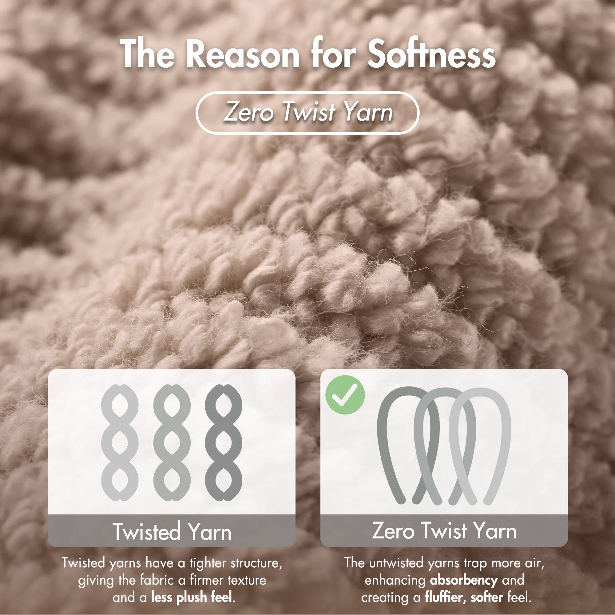 - Yarn Construction: Zero-twist yarns for an exceptionally plush, gentle hand
