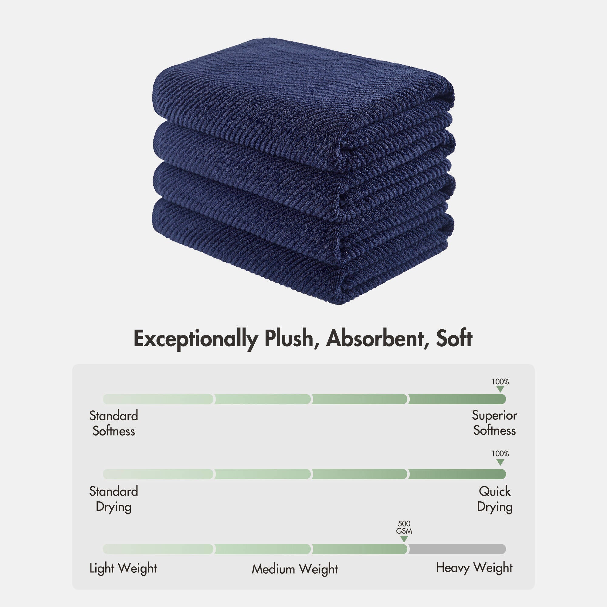- Weight: 518 GSM — balanced for excellent absorbency with quicker drying time