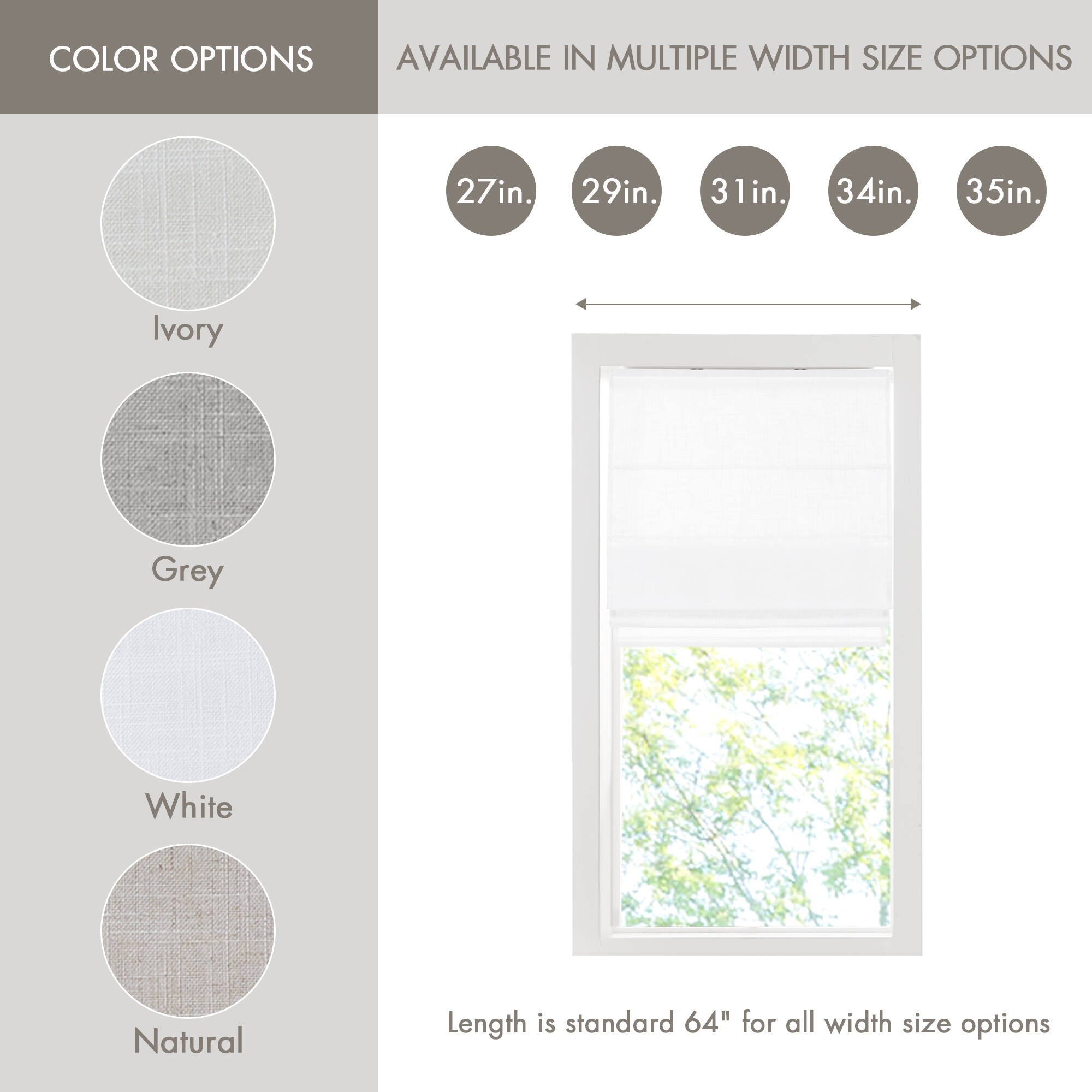 - Light-Filtering Linen-Blend Fabric: Soft white, textured linen-look material diffuses sunlight to reduce glare while preserving a warm, inviting atmosphere.