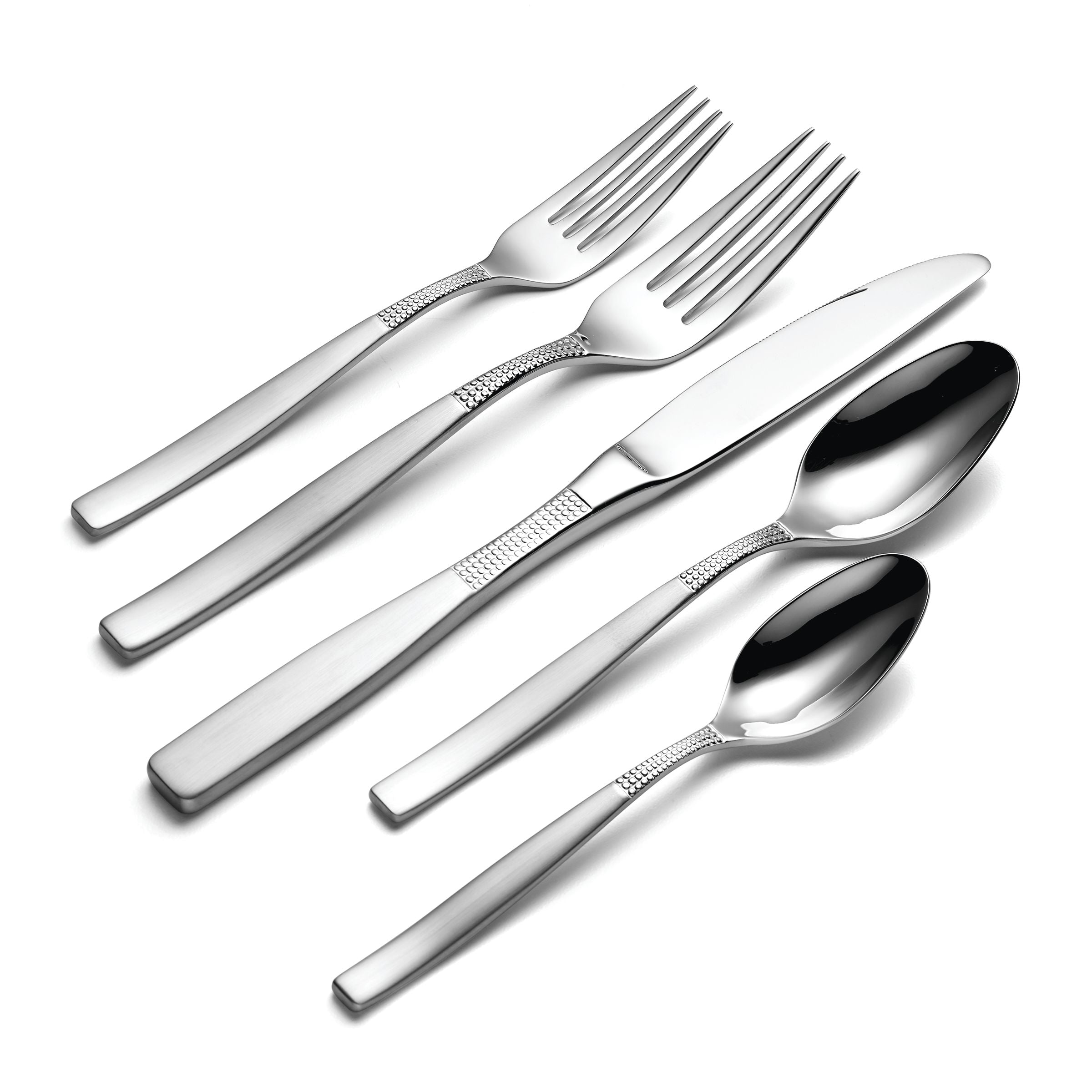 - WhatIsIncluded 1: Includes (8) 5 piece place settings, (8) extra teaspoons, and (1) 5 piece serving set