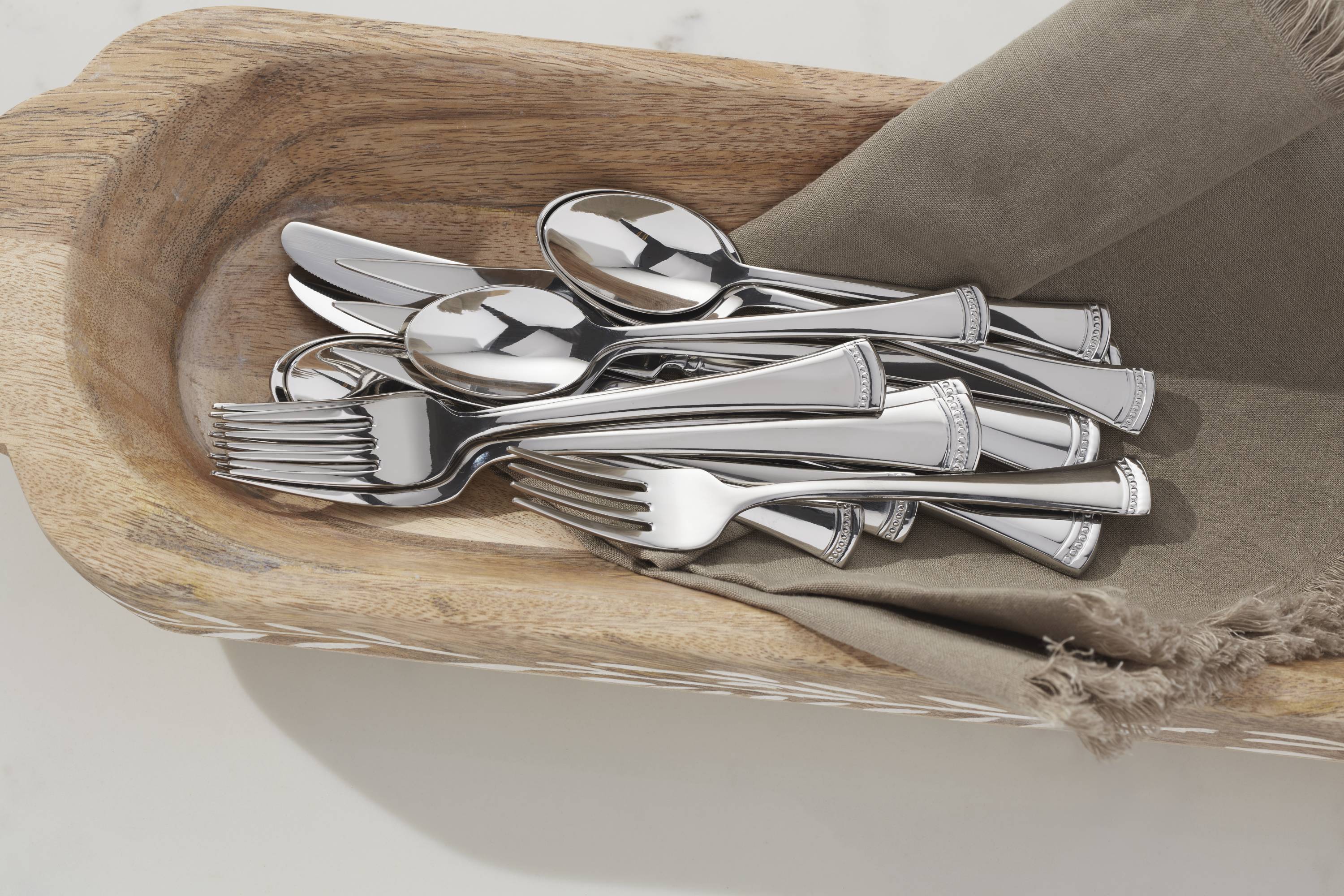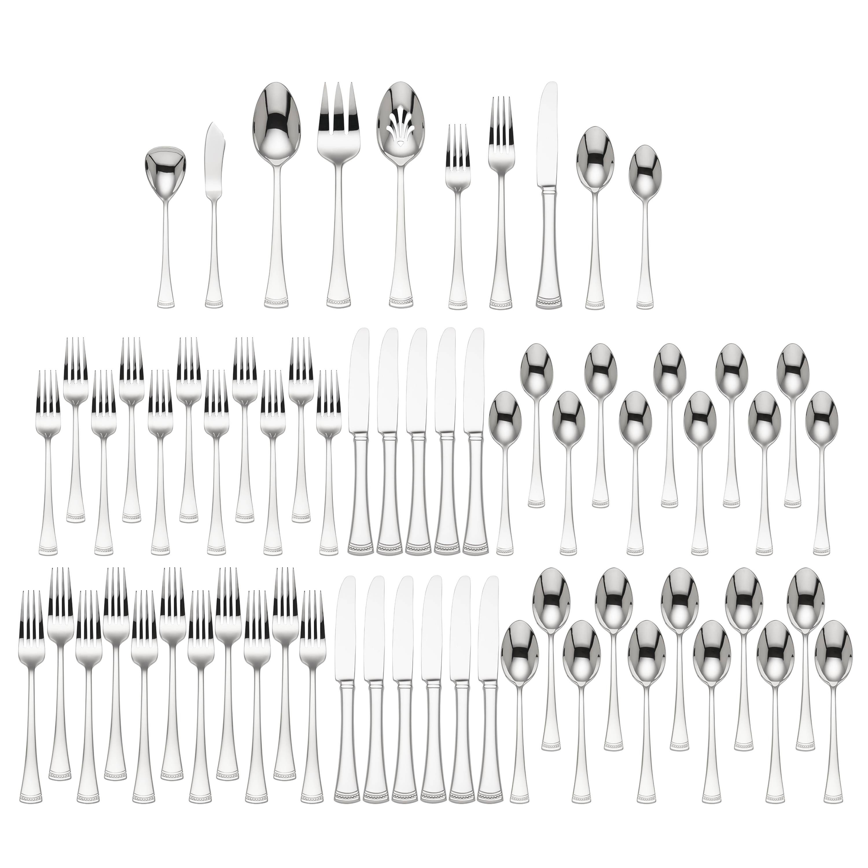- WhatIsIncluded 1: Includes (12) 5-piece place settings and 5-piece serving set with serving spoon, pierced serving spoon, sugar spoon, butter knife, and serving fork