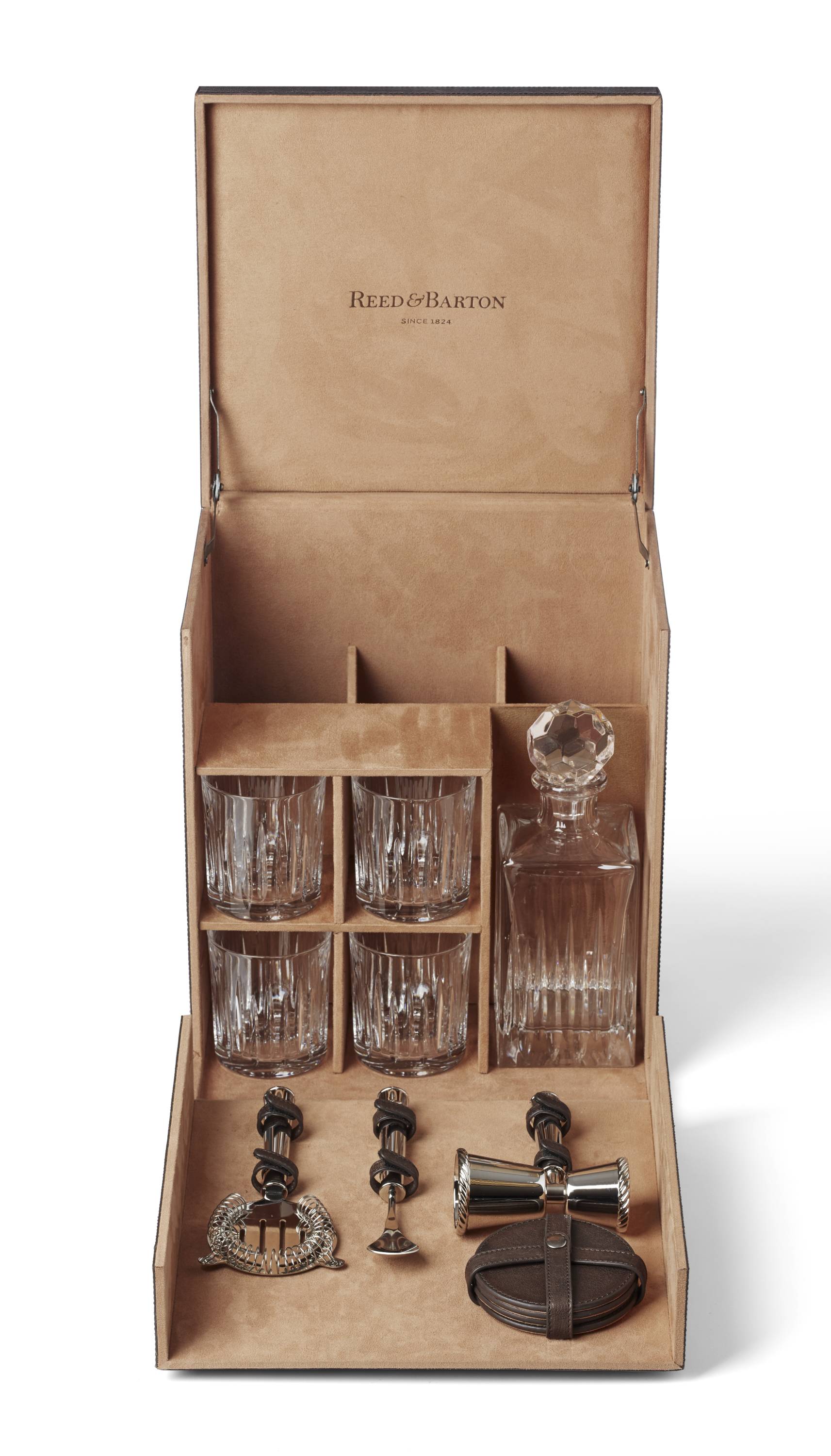 - WhatIsIncluded 2: (1) Genuine leather bar box: 14.25"H x 12.5"W x 11.5"L