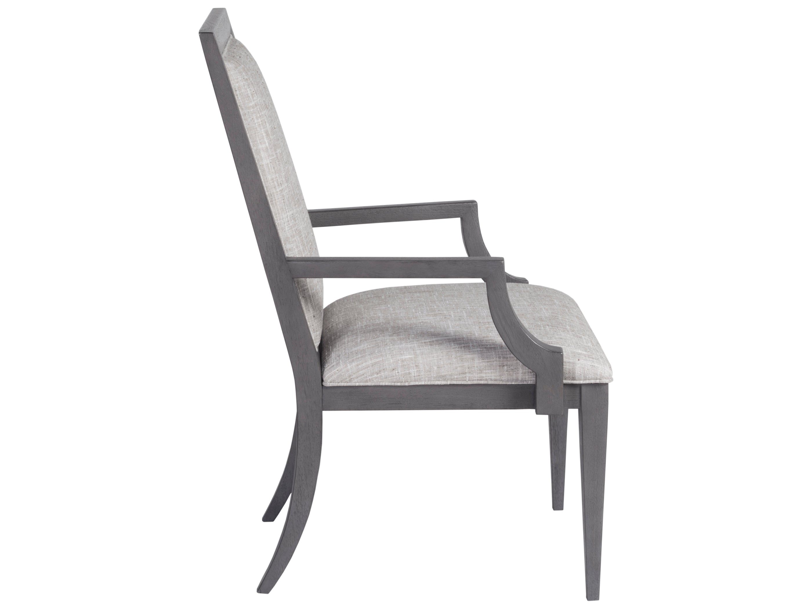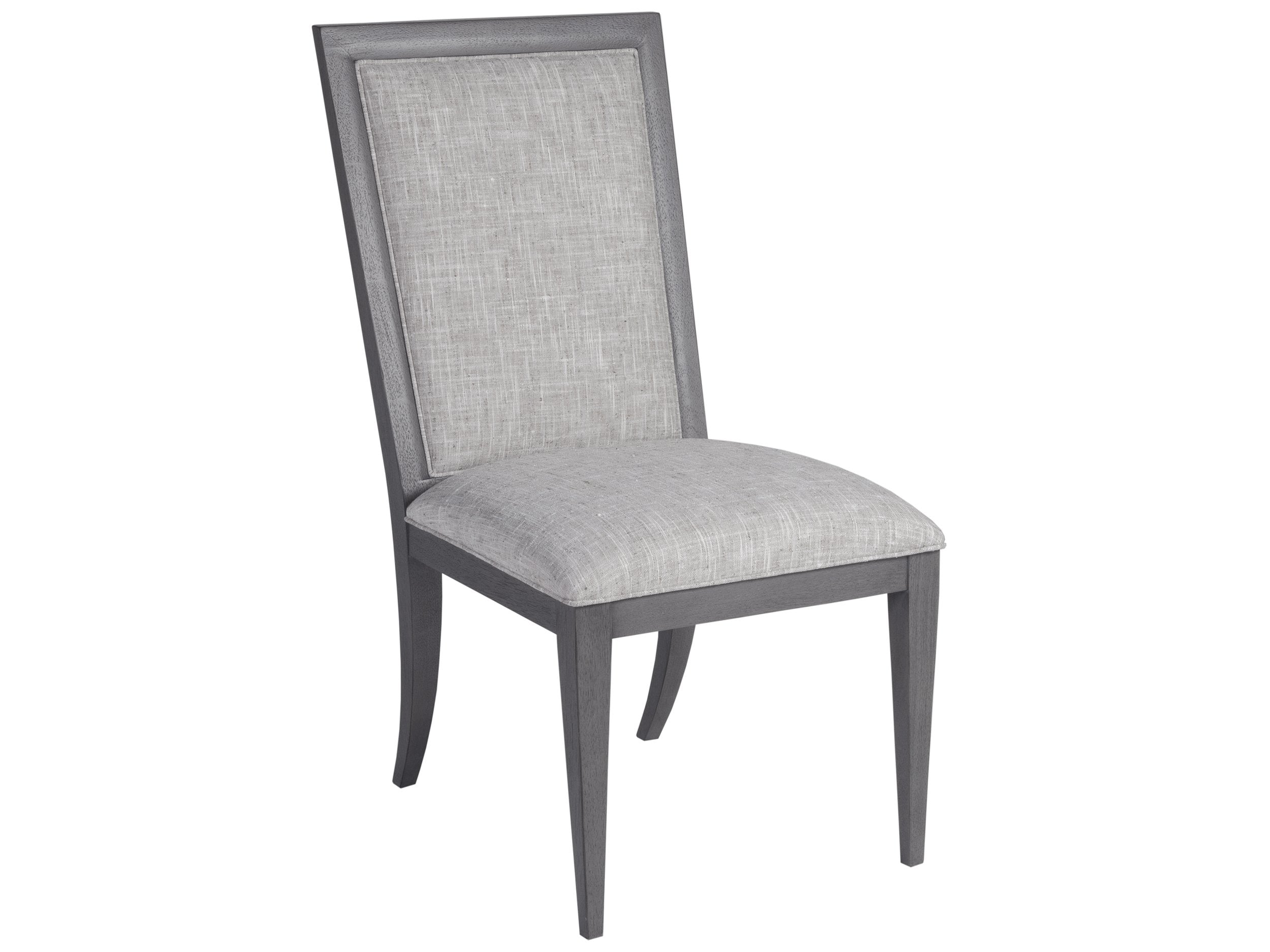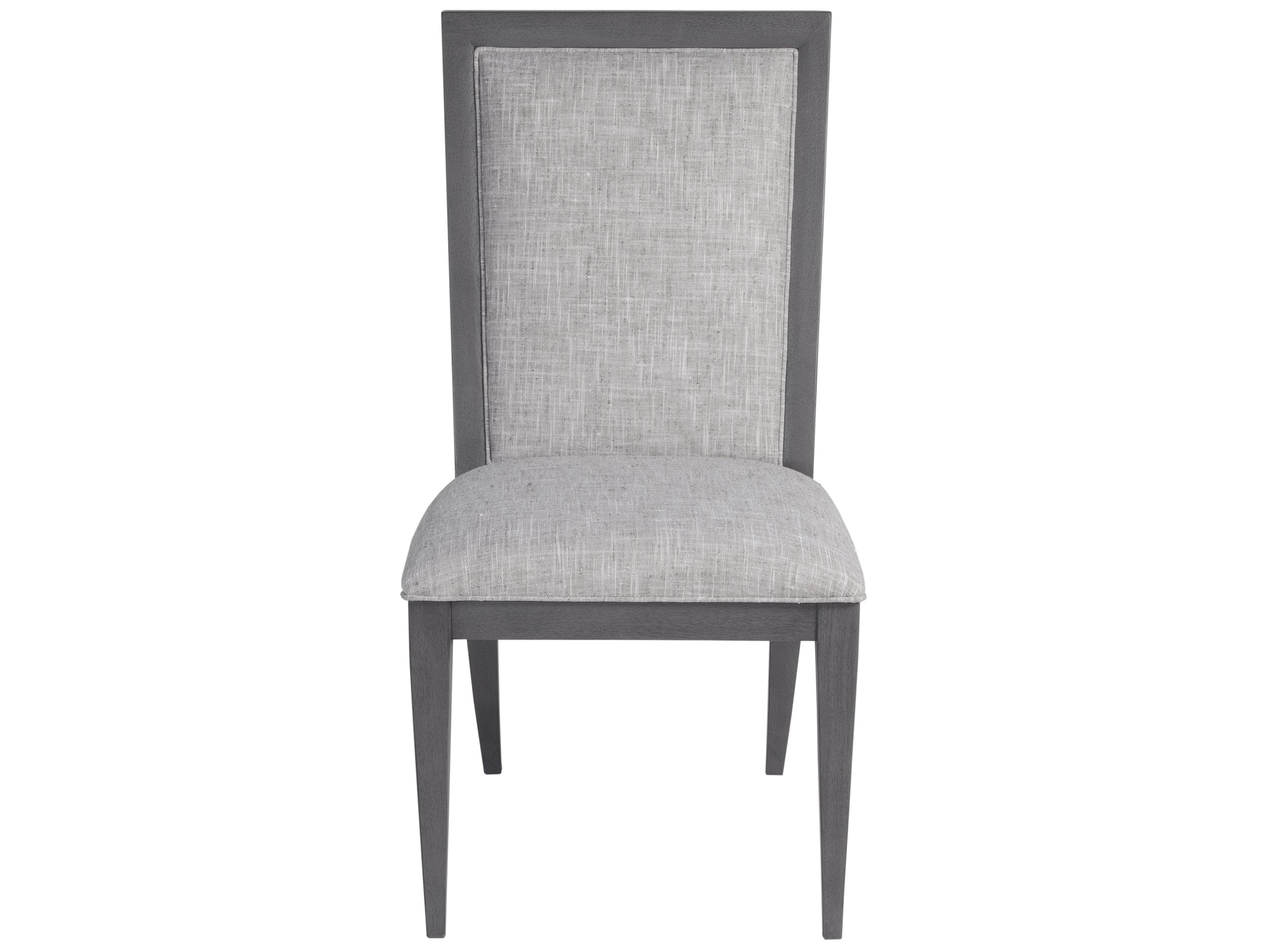 Experience the perfect blend of sophistication and comfort with our elegantly designed upholstered dining chair. The Appellation dining chair is a true embodiment of New Traditional styling, crafted to elevate your dining space with its refined aesthetics and thoughtful details. Upholstered in a luxurious, stain-resistant fabric, this chair not only enhances your décor but also provides lasting comfort for you and your guests. The misty gray finish, complemented by distinctive metal accents, creates a timeless look that speaks to modern luxury.