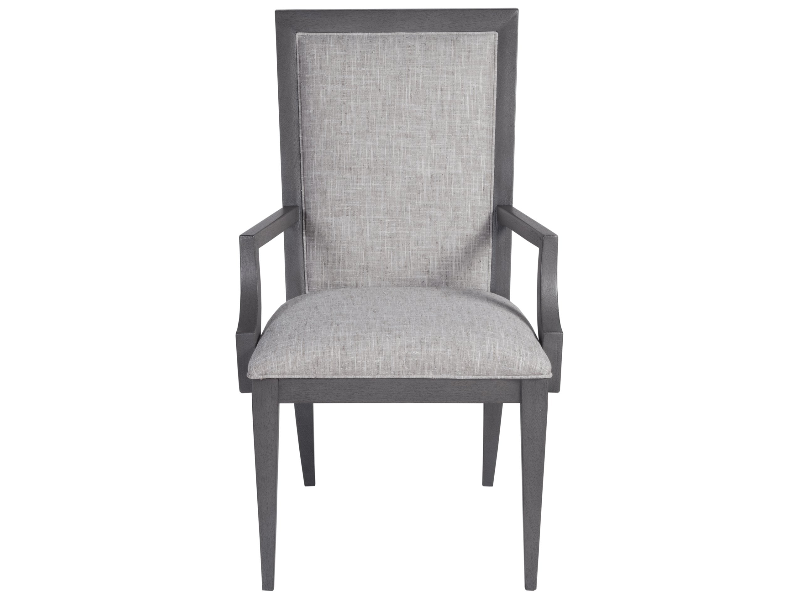 - Fully upholstered dining armchair designed for comfort and style