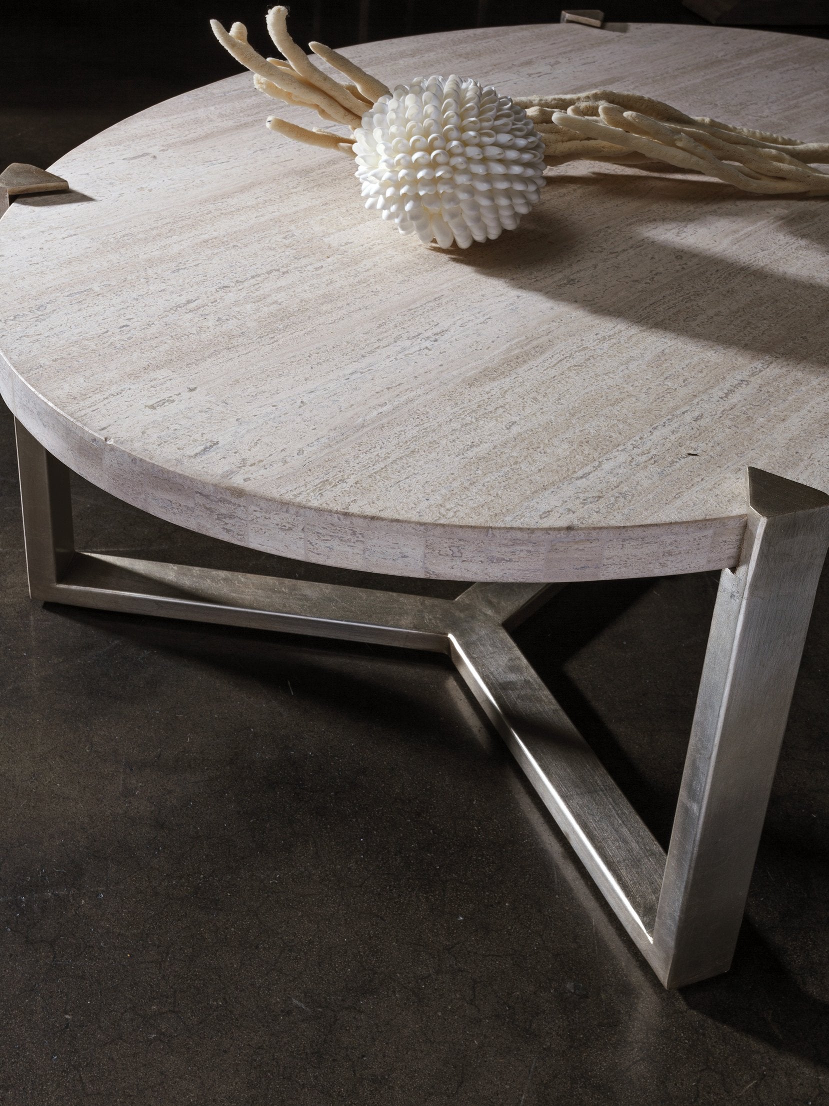 Elevate your living space with the exquisite Denizen Cocktail Table, a perfect blend of contemporary elegance and natural beauty. This stunning piece from Artistica Home’s Signature Designs showcases the unique characteristics of honed White Vein travertine, paired with a sleek iron base finished in a luxurious champagne silver leaf. Designed to be both functional and stylish, this cocktail table serves as a captivating focal point in any room, while highlighting the beauty of natural materials sourced from around the globe.