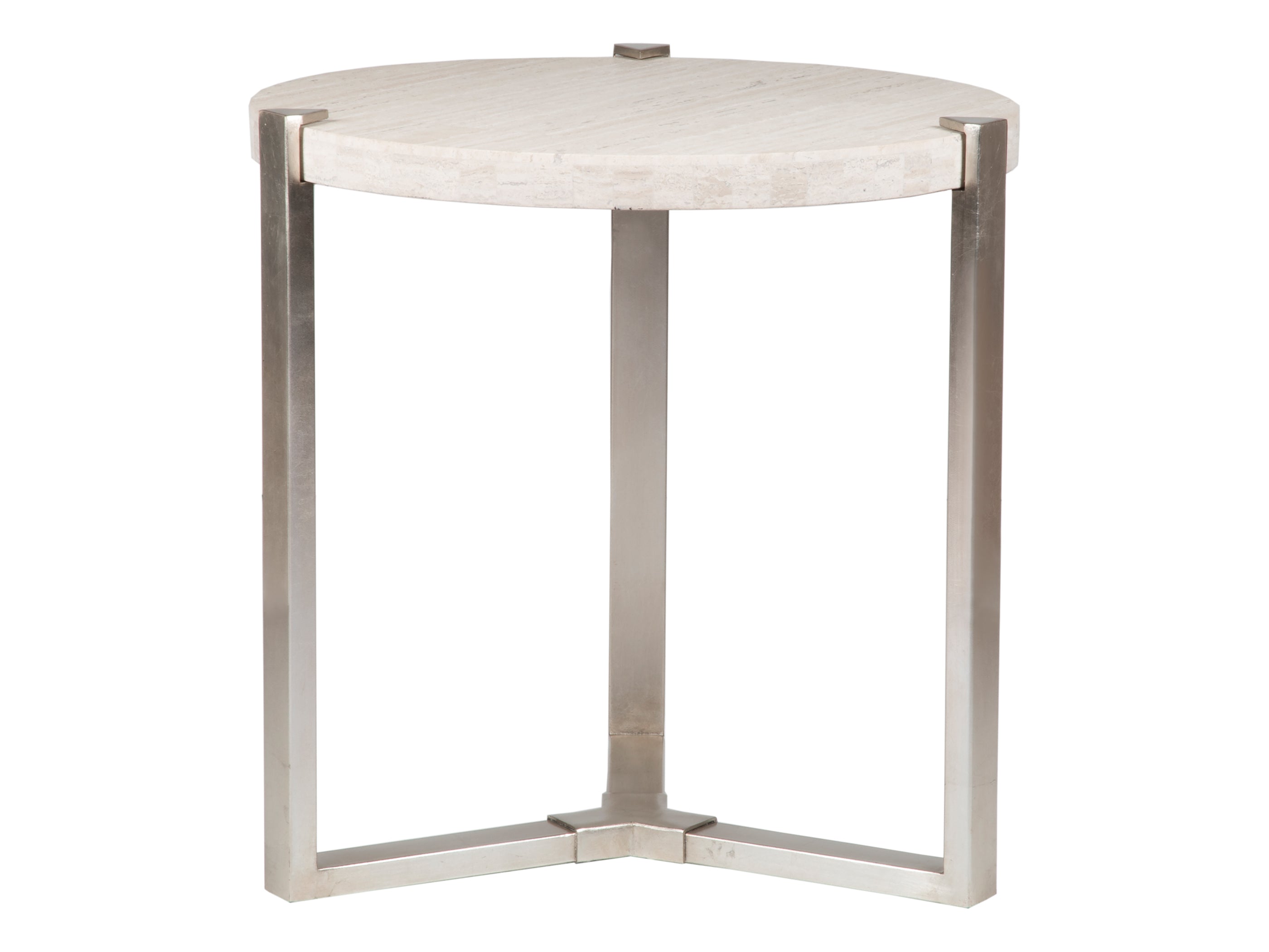 Elevate your living space with the Denizen Round Lamp Table, a masterpiece that seamlessly blends natural beauty and contemporary design. This stunning occasional table features a honed White Vein travertine top, showcasing the unique patterns and textures that only nature can create. Supported by an elegant iron base finished in a luxurious champagne silver leaf, this table is not just a functional piece but a statement of sophisticated style. Perfect for any room, it adds an element of elegance and charm that is sure to impress.