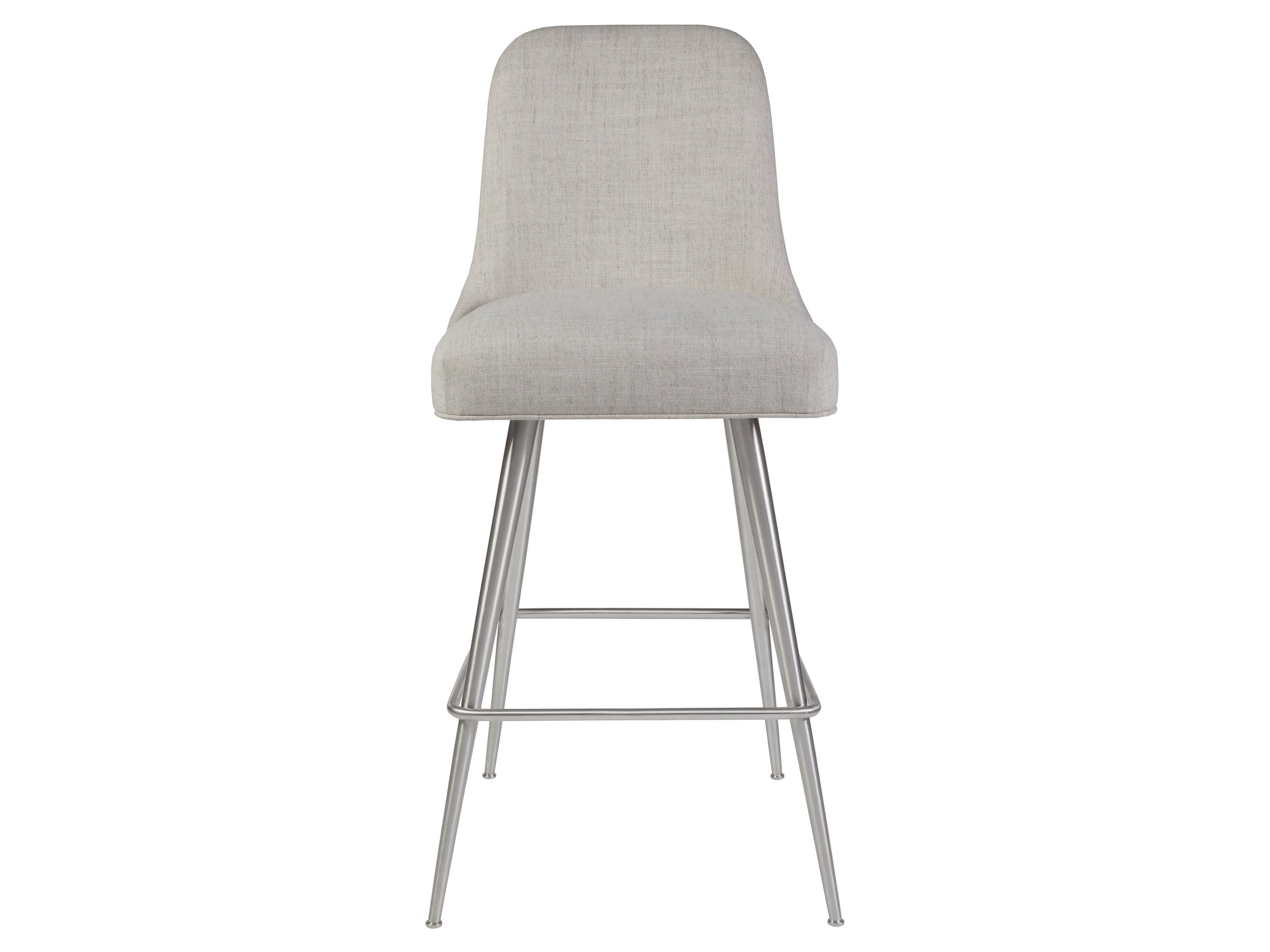 Elevate your living space with the Dinah Swivel Stool, a perfect fusion of style and comfort that embodies the essence of mid-century modern design. This beautifully crafted stool features a plush upholstered seat that not only invites relaxation but also adds a touch of sophistication to any room. Its sleek tapered brushed stainless steel legs provide sturdy support while enhancing the stool's elegant aesthetic. The carefully chosen materials and thoughtful design make it a standout piece in any home, whether used in a dining area, home bar, or as additional seating in the living room.