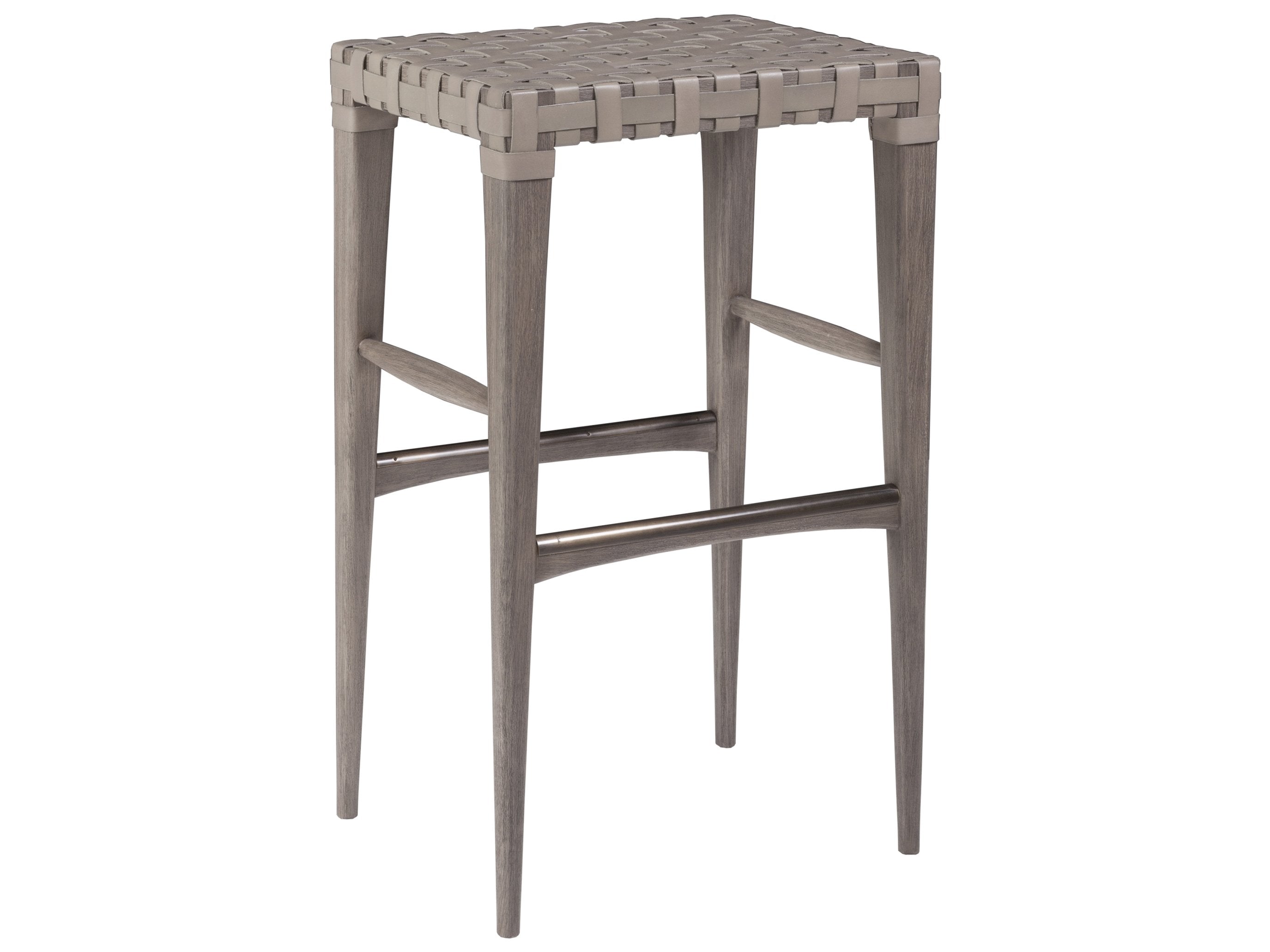 - Features a top grain woven leather seat in a warm gray tone for a luxurious feel