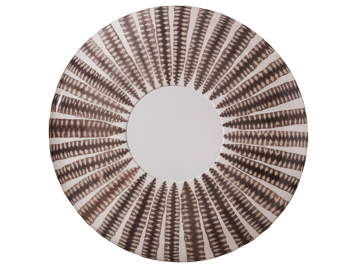 - Contemporary round mirror featuring authentic sea snake skins inlaid in polished white resin.