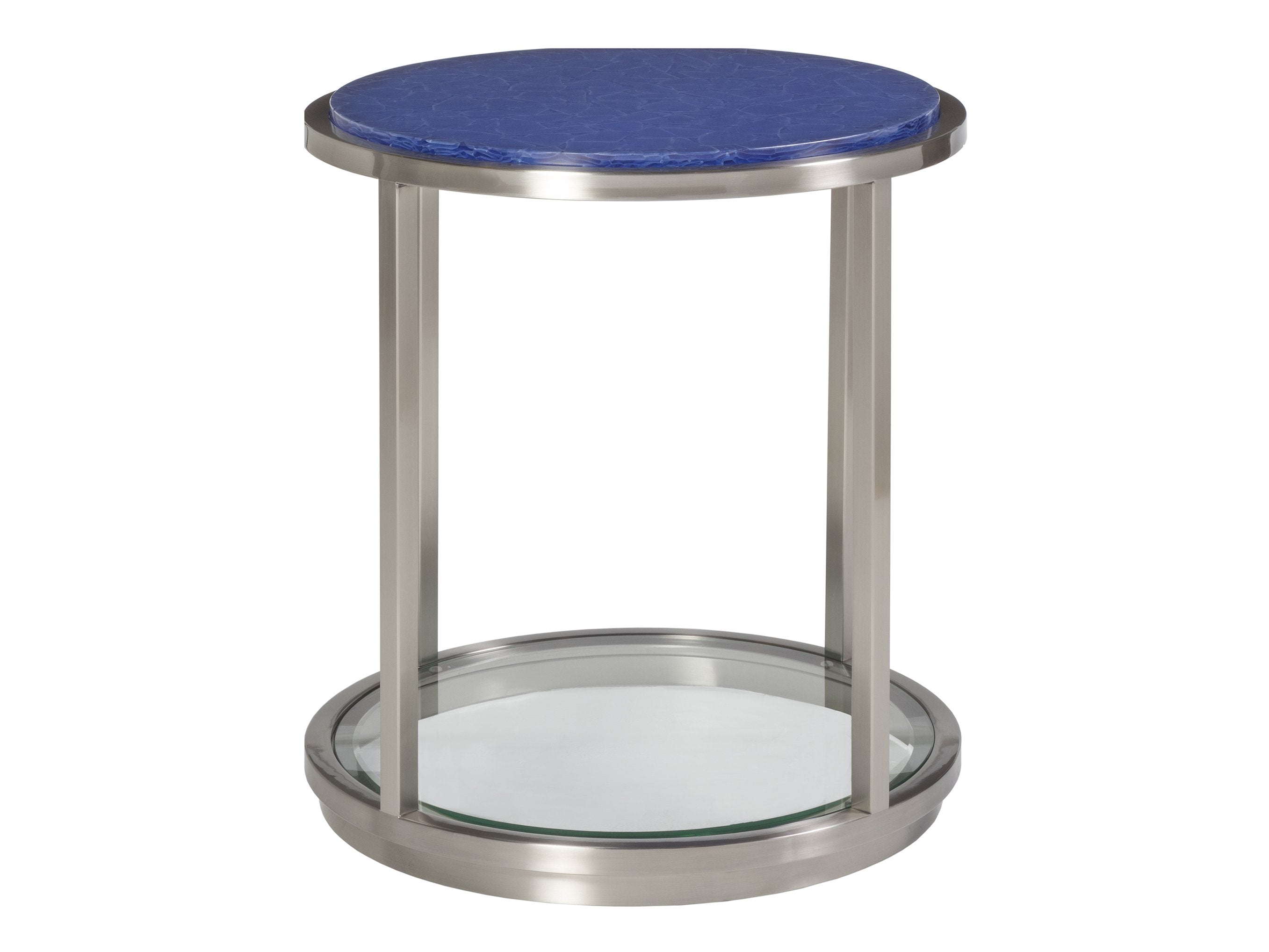 - Unique glass top featuring layered translucent shades of cerulean, cobalt, and ultramarine