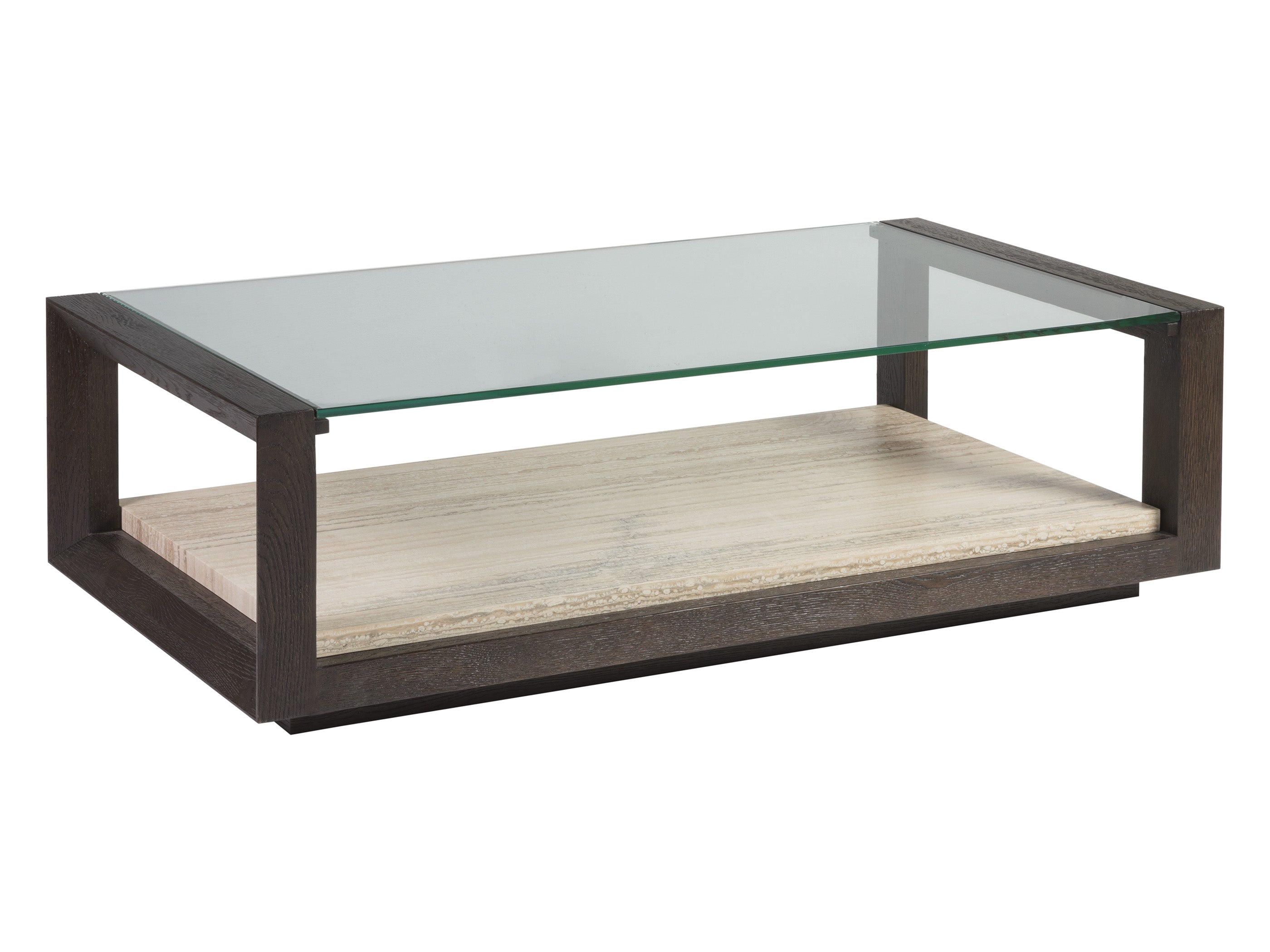 Elevate your living space with the Venerato Rectangular Cocktail Table, a stunning centerpiece that beautifully blends contemporary design with natural elements. This cocktail table is a testament to Artistica Home’s commitment to artistry and craftsmanship, showcasing a unique combination of materials that enhances any room's aesthetic. The rich mocha brown finish, combined with the elegance of tempered glass and the organic beauty of Fantasy travertine, creates a striking visual appeal that captivates the eye.