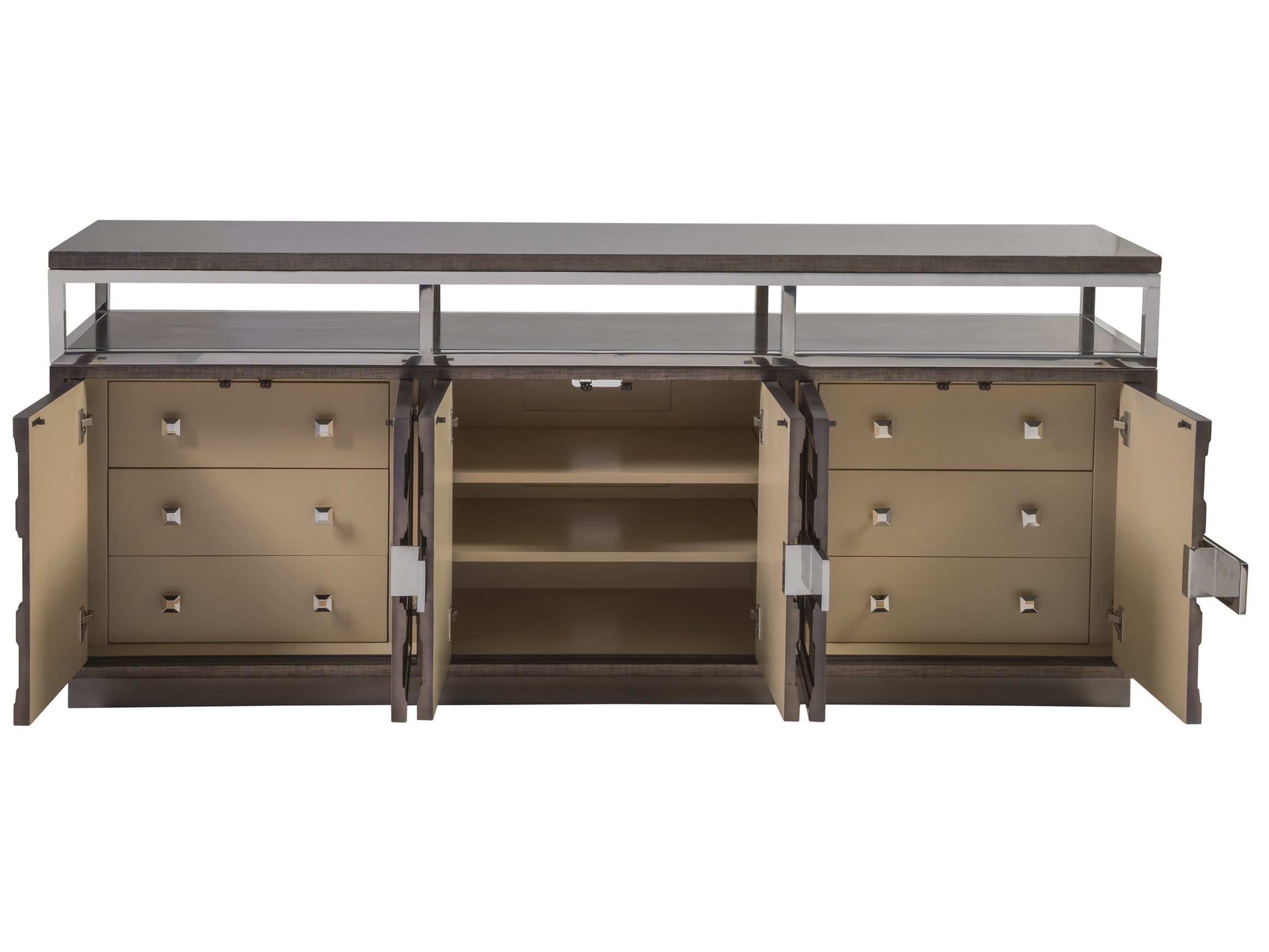 - Two adjustable shelves behind the center doors for customizable organization