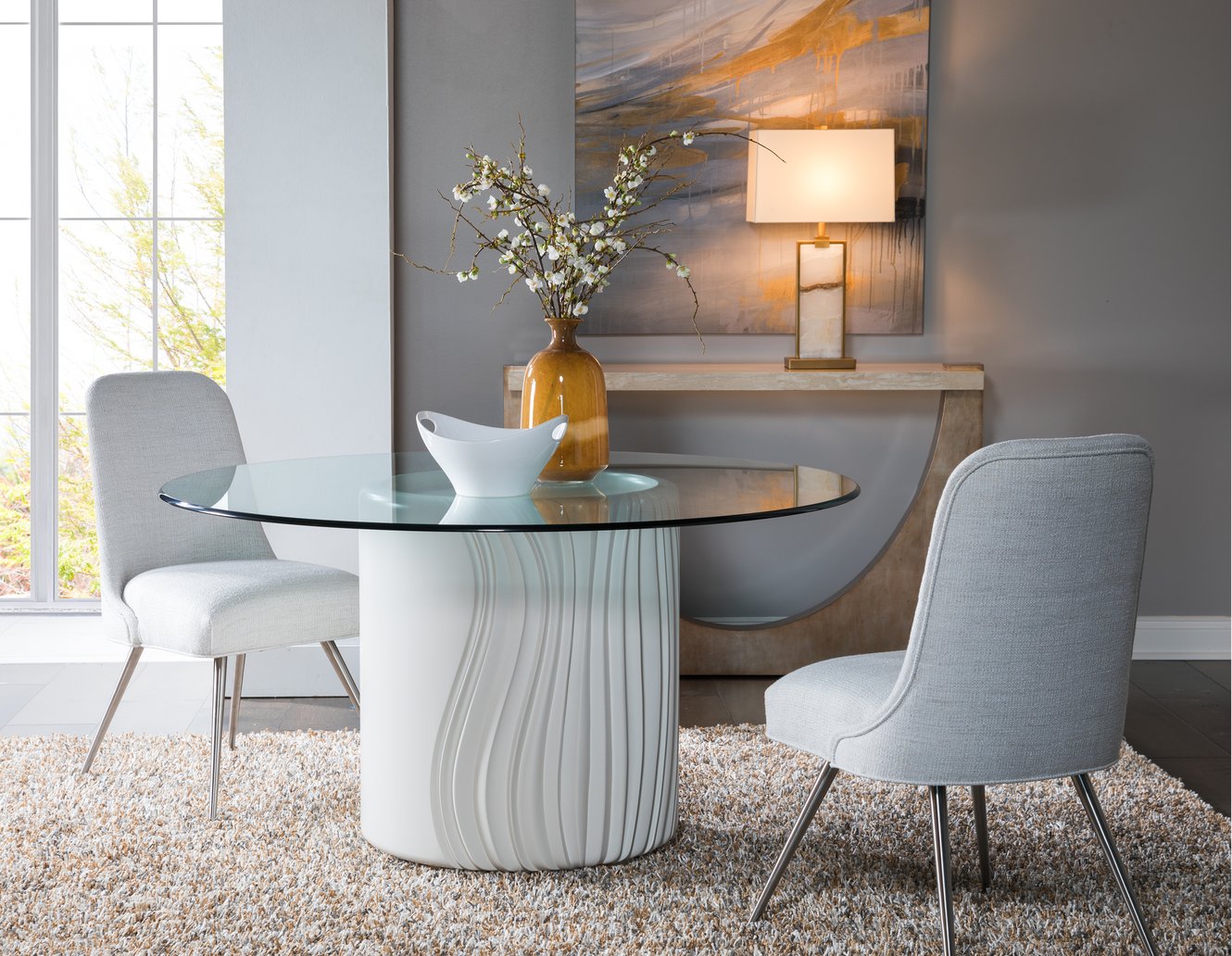 Transform your dining space with the stunning Volante Round Dining Table, where exquisite design meets practical elegance.