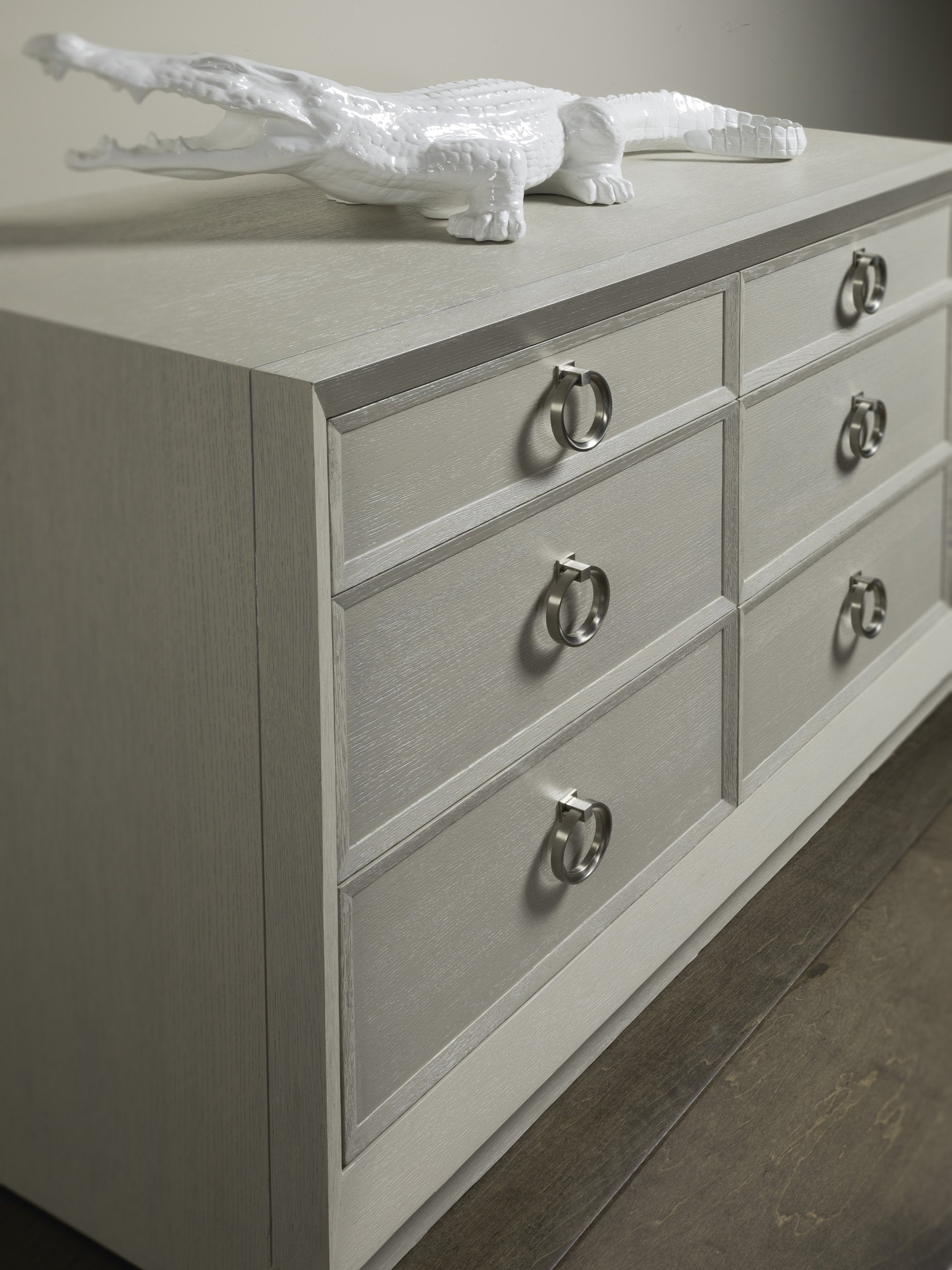 Experience the perfect blend of sophistication and functionality with this stunning double dresser from Artistica Home’s Signature Designs collection. Designed to make a statement, this piece features a stunning architectural aesthetic that complements any contemporary bedroom. Crafted from high-quality materials, the dresser showcases a beautiful white oak wire brushed ceruse finish, enhancing its visual appeal while ensuring durability. Whether used as a standalone statement piece or in conjunction with other Zeitgeist silhouettes, this dresser offers both style and practicality, making it an ideal addition to your home.