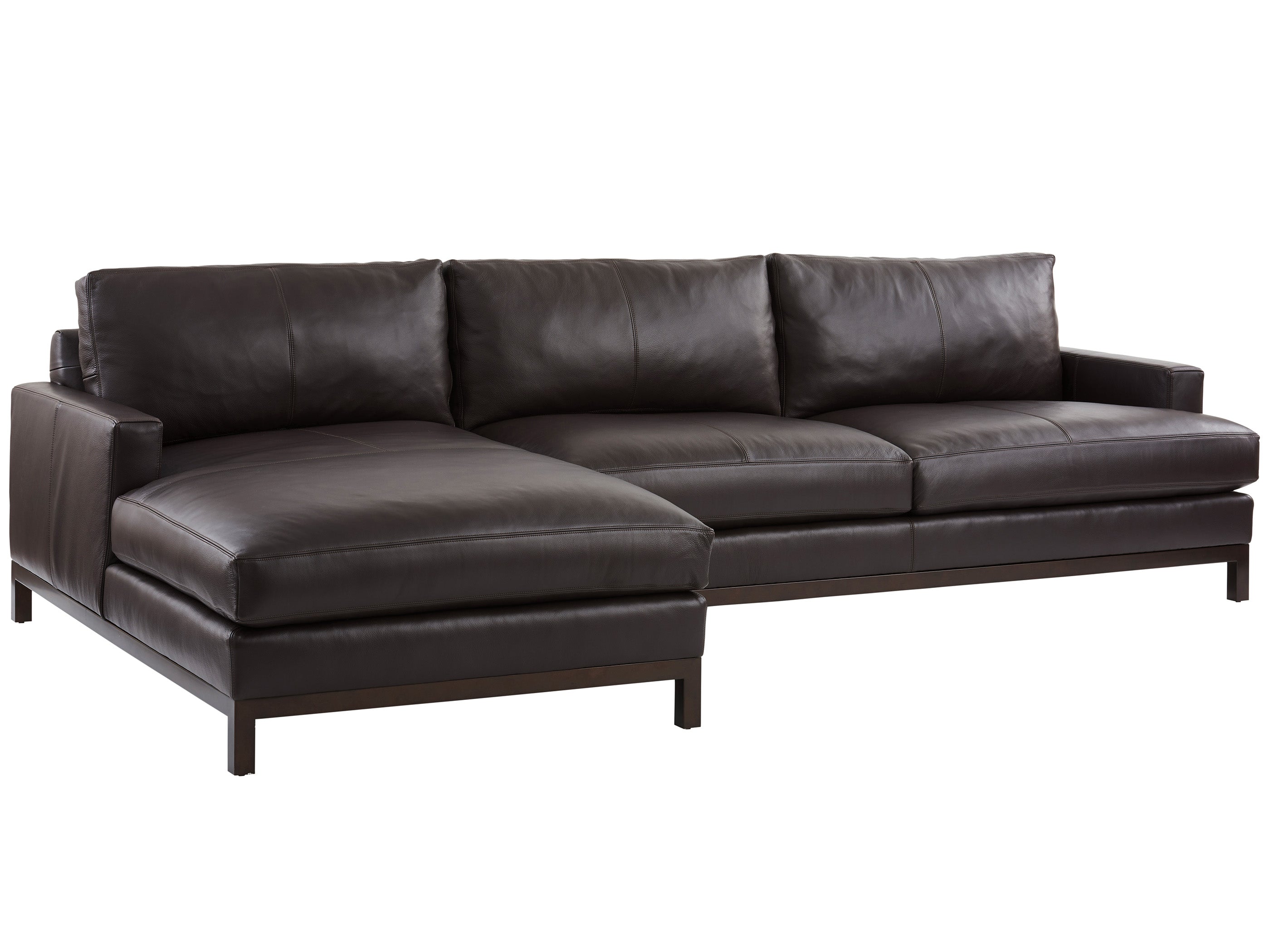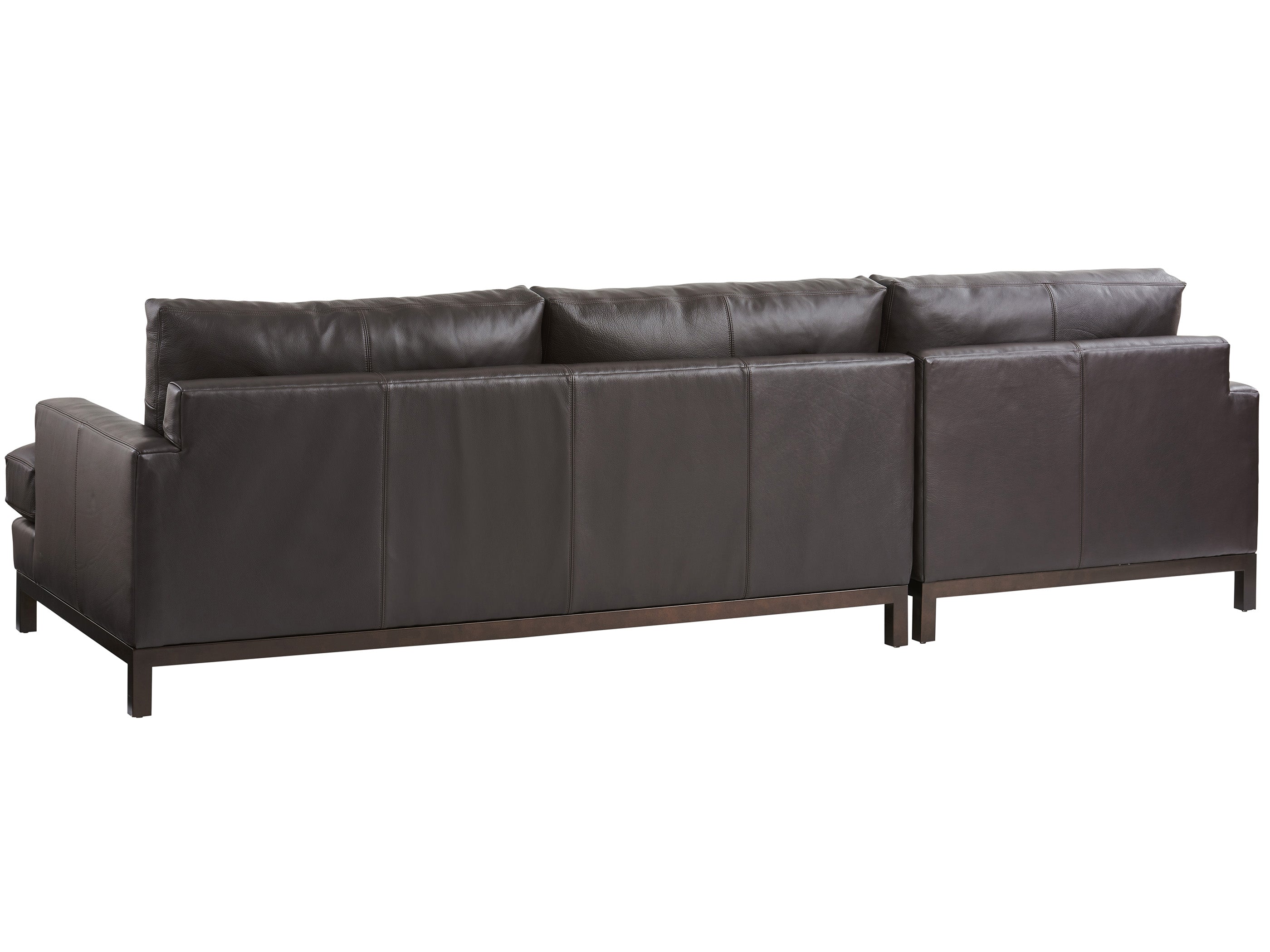 Experience the perfect blend of style, comfort, and craftsmanship with the Horizon Leather Sectional Sofa. Designed by renowned interior designer Barclay Butera, this sectional is a testament to superior artistry and meticulous attention to detail. Each piece is carefully crafted in North Carolina by skilled artisans, ensuring that every element meets the highest standards of quality. The seamless combination of premium leather and exquisite metal finishes not only enhances your living space but also serves as a canvas for your unique style.