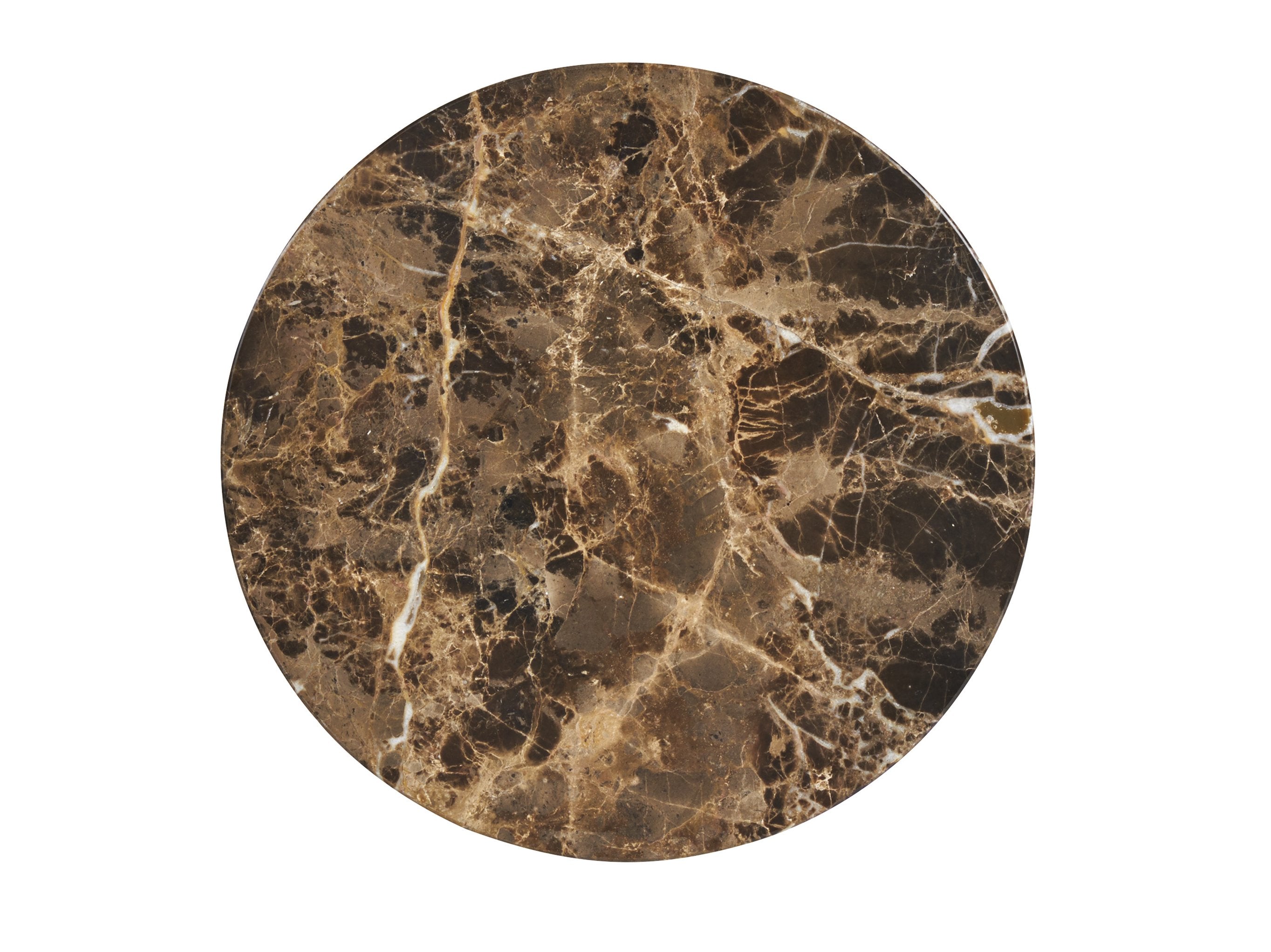 - Luxurious honed Dark Emperador marble top that showcases a rich, deep coloration.