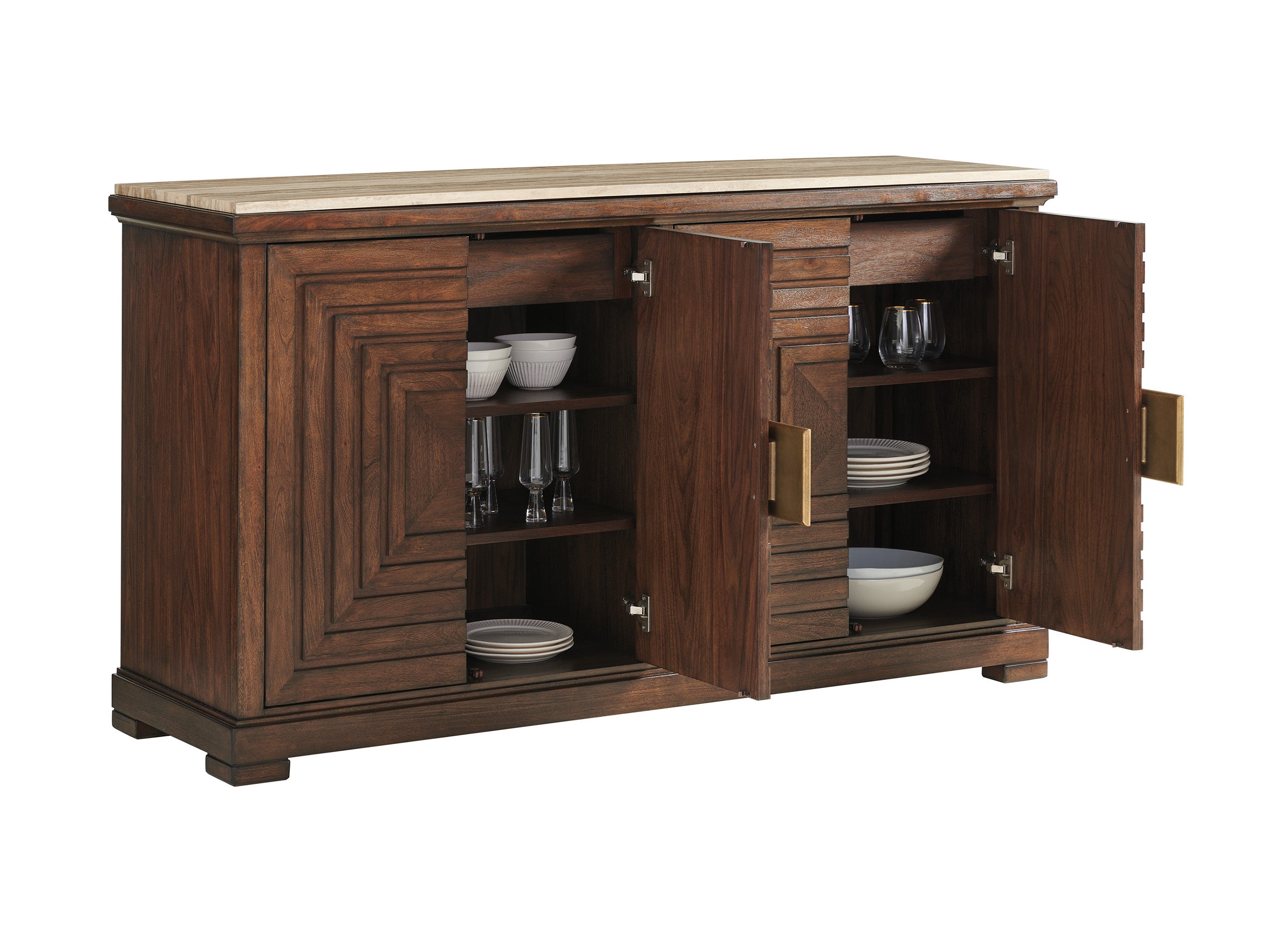 Elevate your dining experience with the Los Gatos Buffet, a stunning piece that seamlessly blends traditional elegance with contemporary flair. Crafted with meticulous attention to detail, this buffet showcases a rich walnut finish that highlights the beauty of walnut veneers and mahogany solids. The hand-wrought metal bases in a maritime brass finish add an artisan touch, while the option for a tiger-brown travertine top provides a unique and exotic accent. Designed for both functionality and style, the Los Gatos Buffet is perfect for entertaining guests or showcasing your cherished dinnerware.