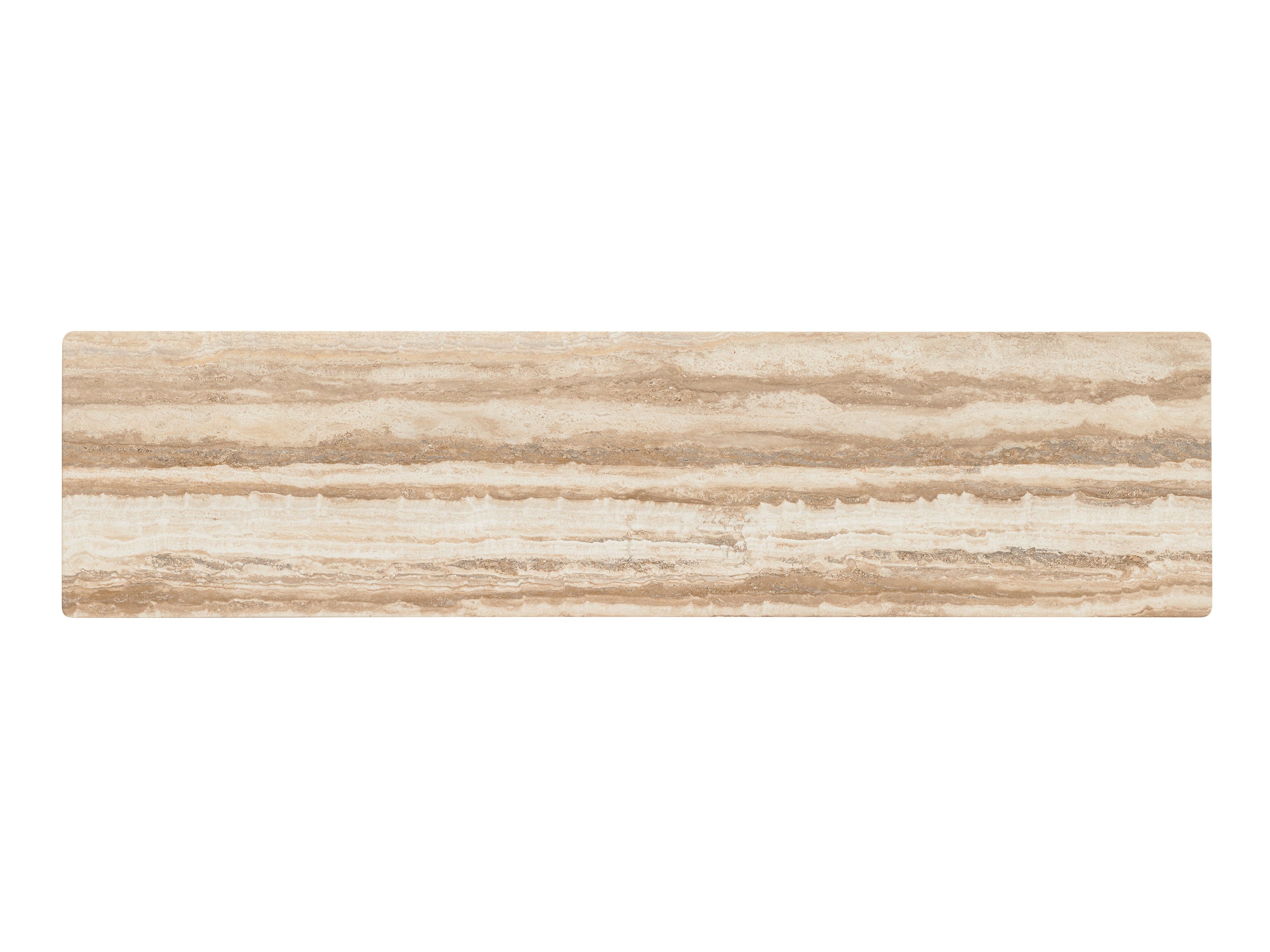 Elevate your living space with the Menlo Park Console Table, a stunning fusion of elegance and artisanal craftsmanship. This exquisite piece combines the warmth of rich walnut veneers and mahogany solids with the striking beauty of exotic tiger brown travertine. The console table’s design reflects a contemporary take on traditional aesthetics, making it an ideal statement piece for any room. The unique patterns of the travertine top add a touch of nature's artistry, while the maritime brass base showcases the skill of the artisan, ensuring that each table is a one-of-a-kind addition to your home.