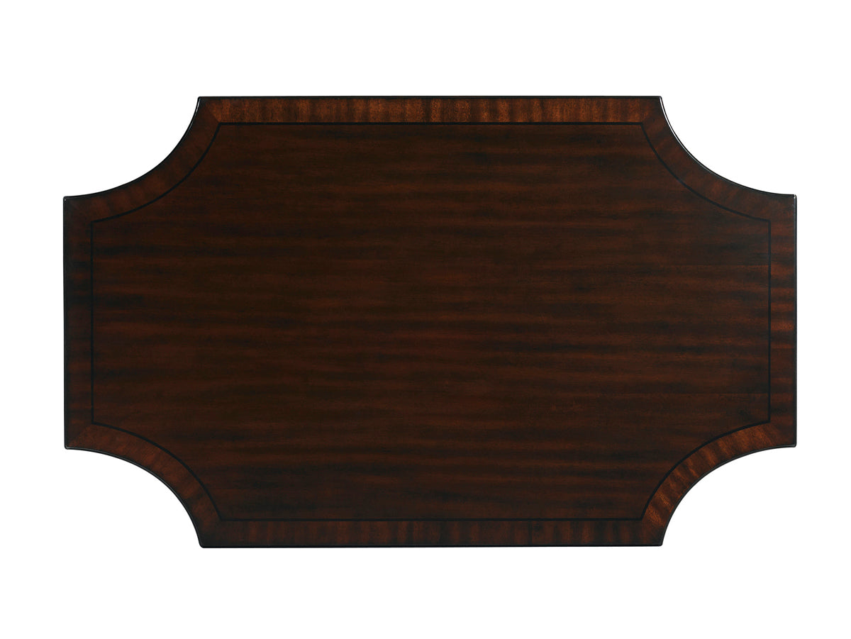 Elevate your living space with the Richmond Rectangular Cocktail Table, a stunning centerpiece that seamlessly blends modern elegance with traditional charm. This exquisite piece showcases the artistry of Ribbon Stripe Mahogany, enhanced by antique brass accents that add a touch of sophistication. Its chic design, characterized by graceful saber legs and scalloped corners, makes it a perfect fit for contemporary and classic interiors alike. Ideal for entertaining guests or enjoying a cozy night in, this cocktail table not only serves a practical purpose but also expresses your unique style.