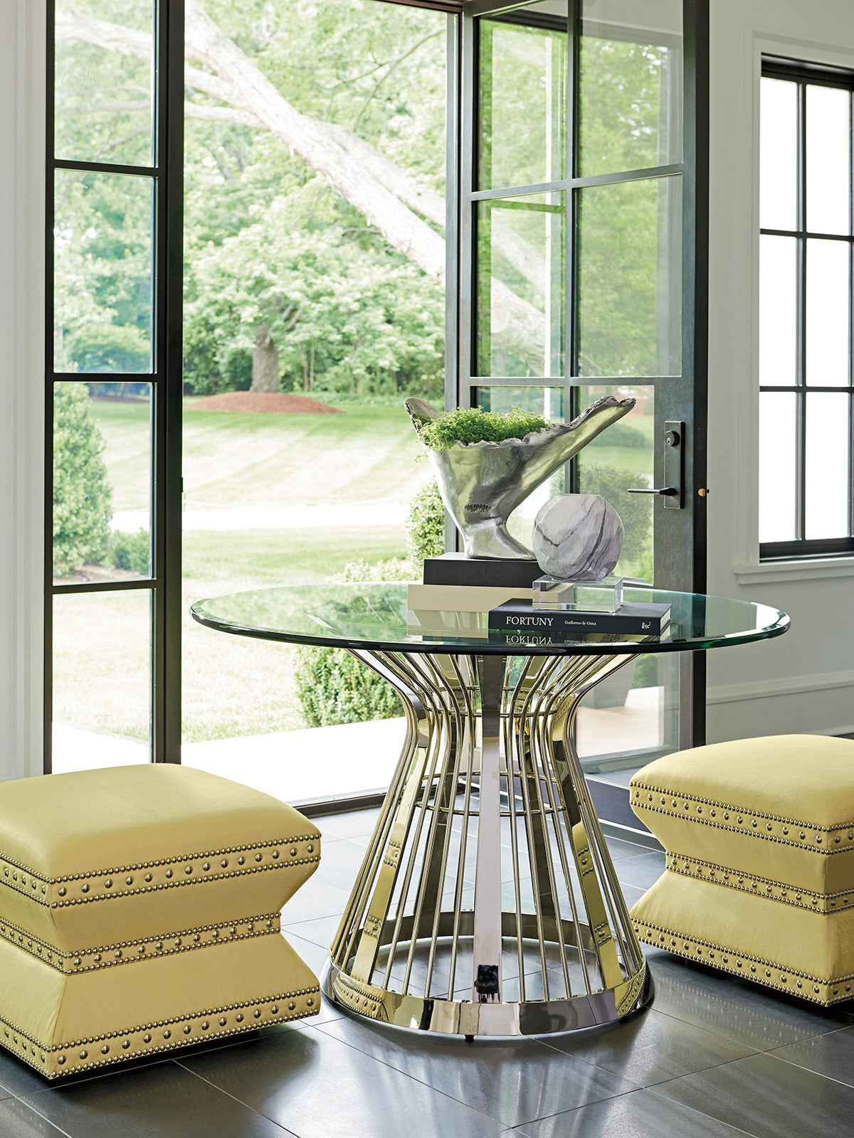 - Glass top features a 1-inch beveled edge for added elegance and a polished look.