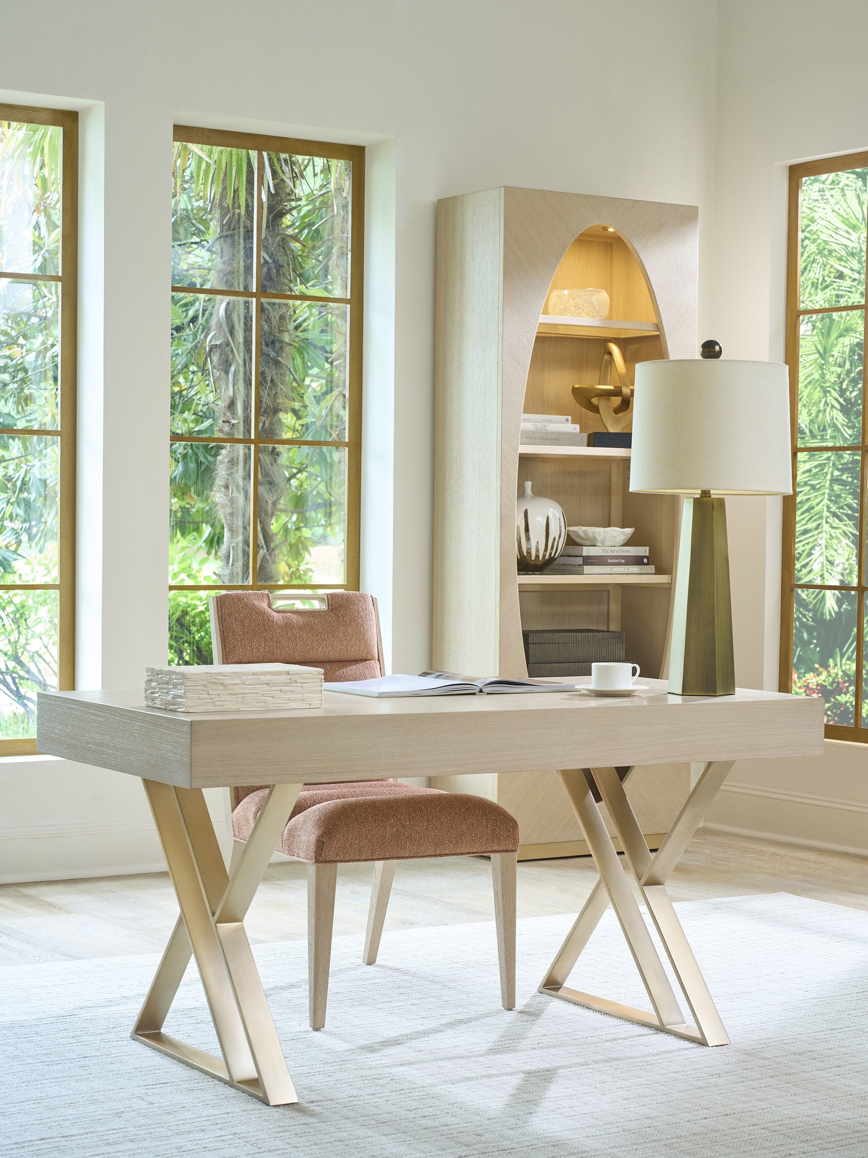 Elevate your workspace with the Apogee Writing Desk, where style meets practicality in a beautifully crafted piece.
